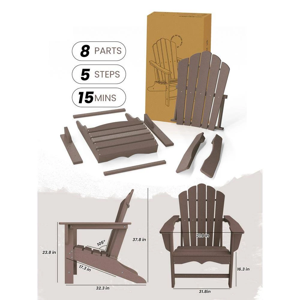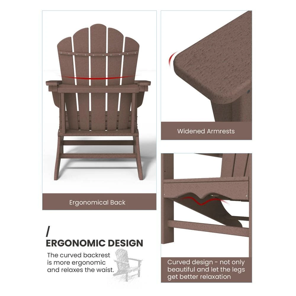 Classic All-Weather HDPE Plastic Adirondack Chair In Brown