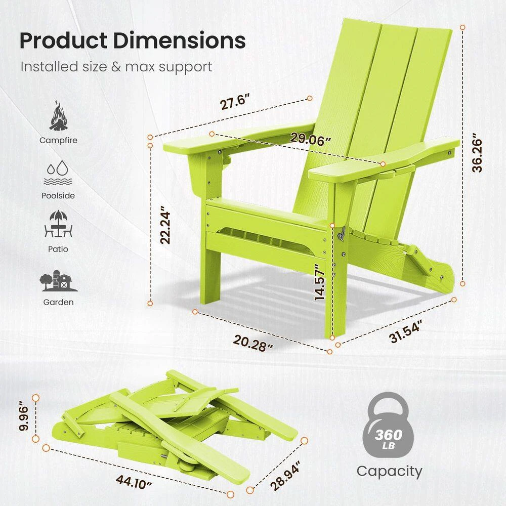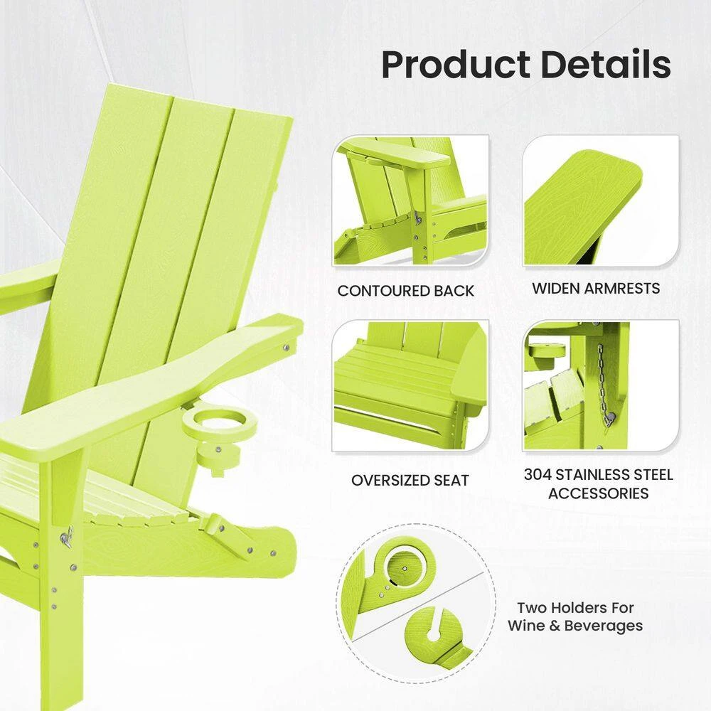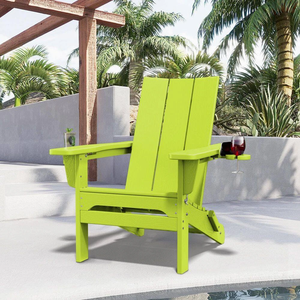 Classic Apple Green Folding Plastic Adirondack Chair With Double Cup Holder