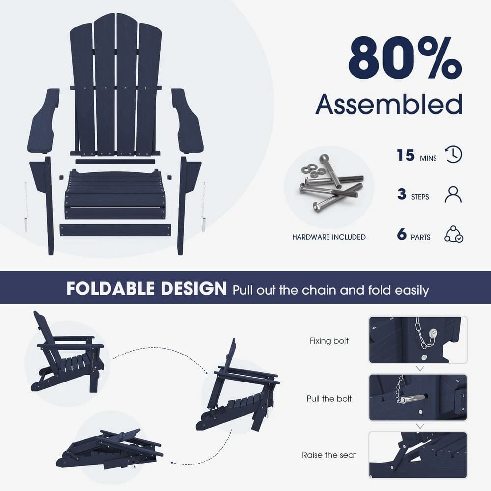 This folding Adirondack chair in a variety of colors adds a touch of bright color to your outdoor space. The retro surface and classic shape of the chair is the perfect choice for your decoration. The waterproof and folding functional attributes protect the product itself and last the use time limit. The curved seat conforms to ergonomics maximizes the comfort for the user. Sit back and soak up the Sun to enjoy outdoor with this amazing chair This stylish patio chair will become a staple in your backyard, patio, porch, lakeside lodges and mountain cabins. Please search the side table to match this adirondack chair by 321043535.