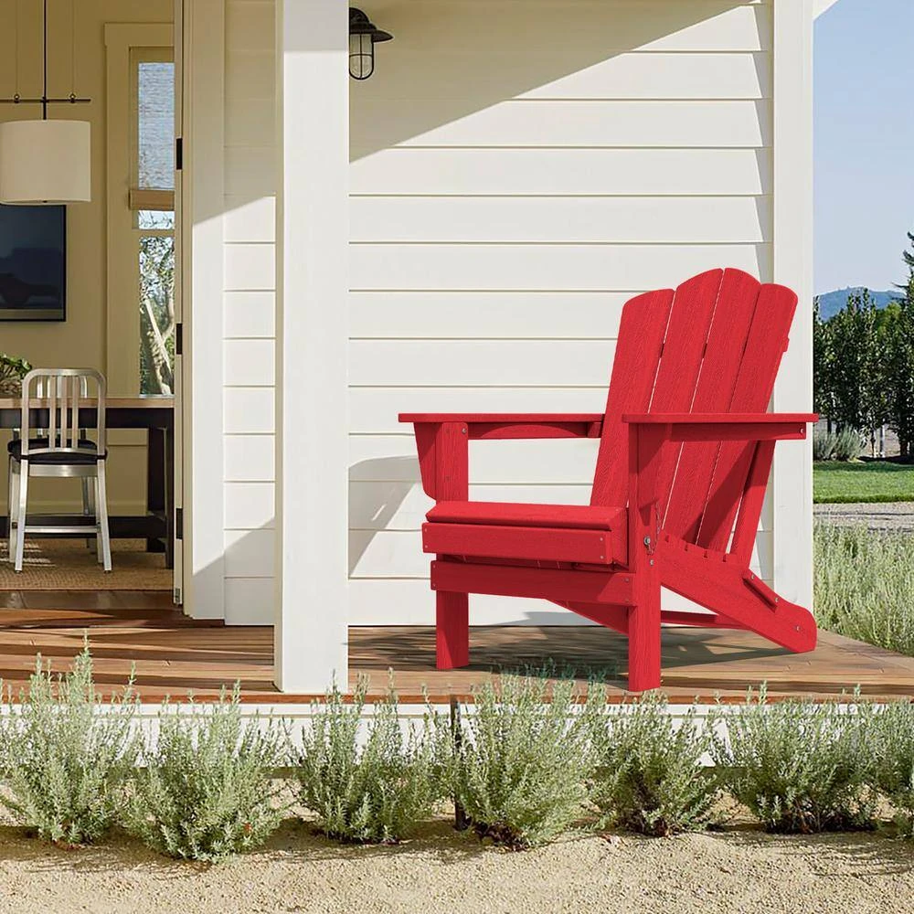 Classic Bright Red HDPE Folding Plastic Adirondack Chair (1-Pack)