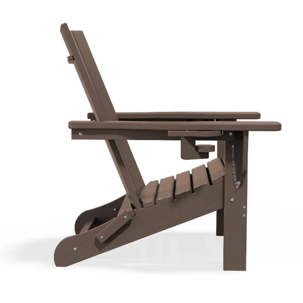 Classic Brown Folding Plastic Adirondack Chair With Double Cup Holder