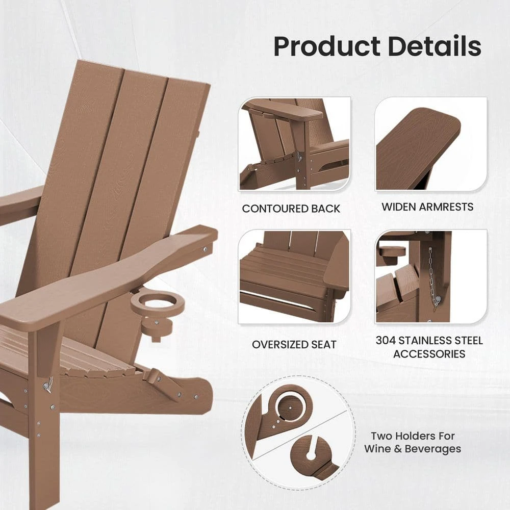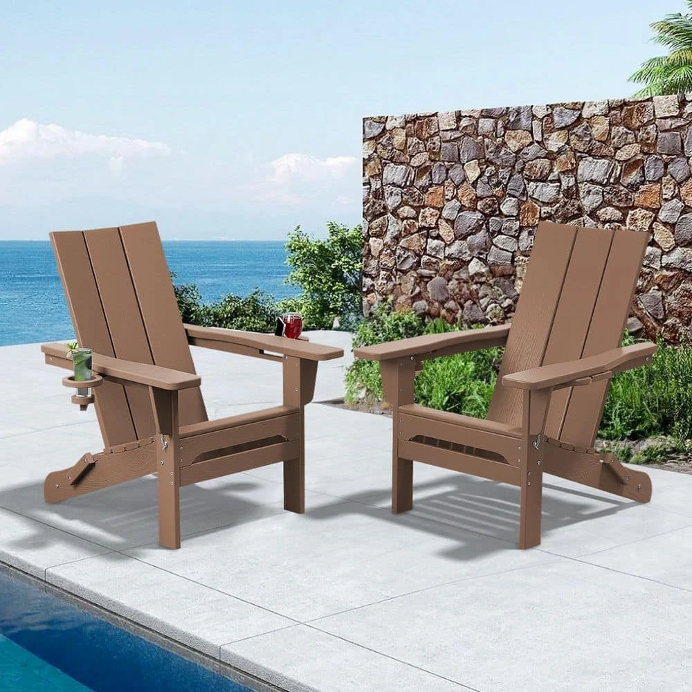 Classic Brownwood Folding Plastic Adirondack Chair With Double Cup Holder