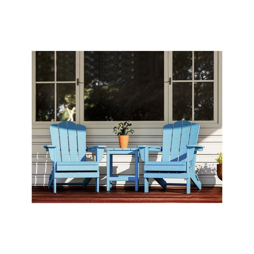 Classic Folding HDPE Plastic Adirondack Chair In Light Blue