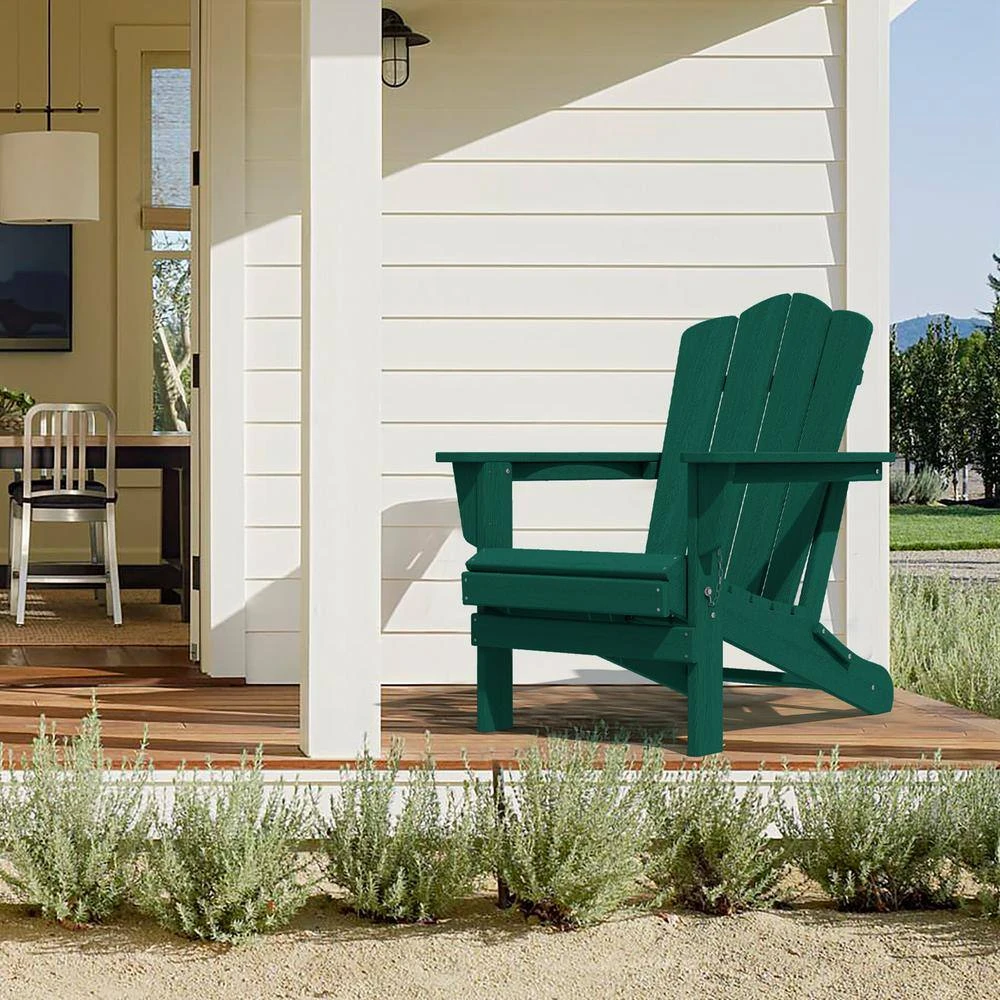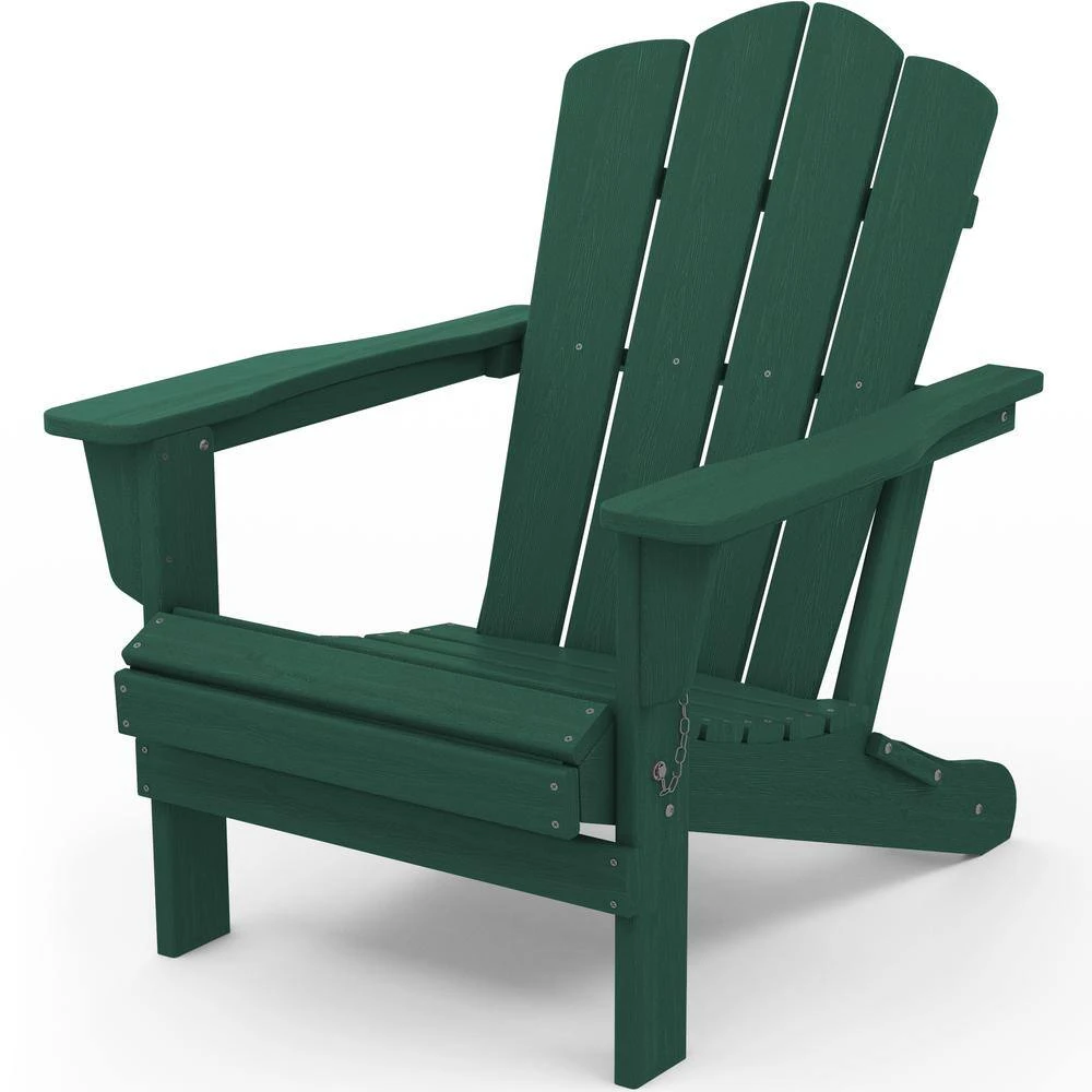 Classic Green HDPE Folding Plastic Adirondack Chair (1-Pack)