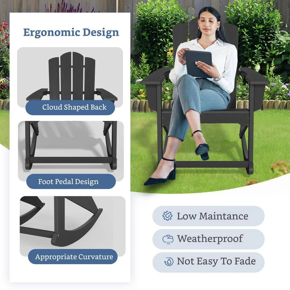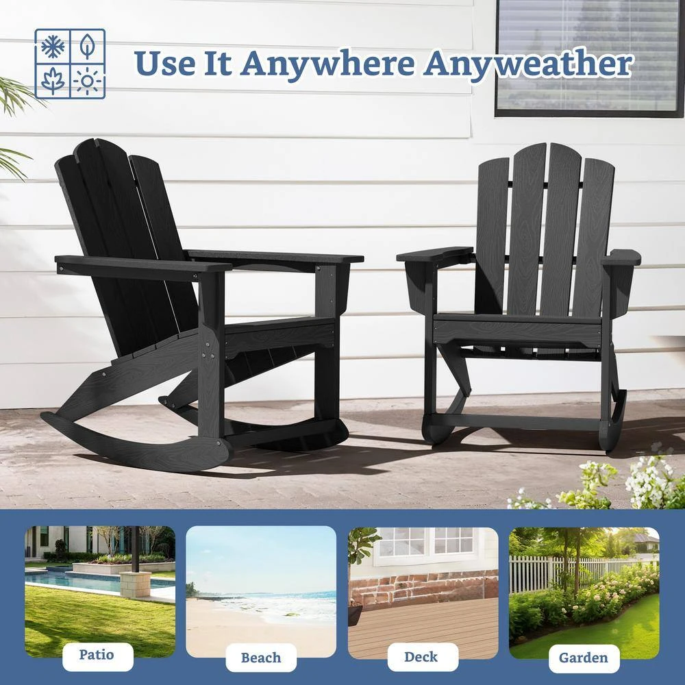 Classic HDPE Plastic Outdoor Rocking Chair In Black