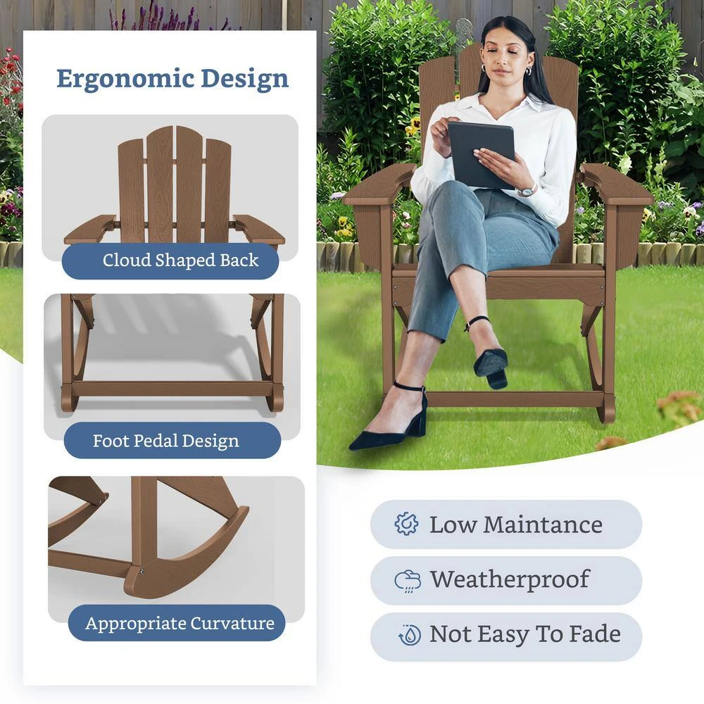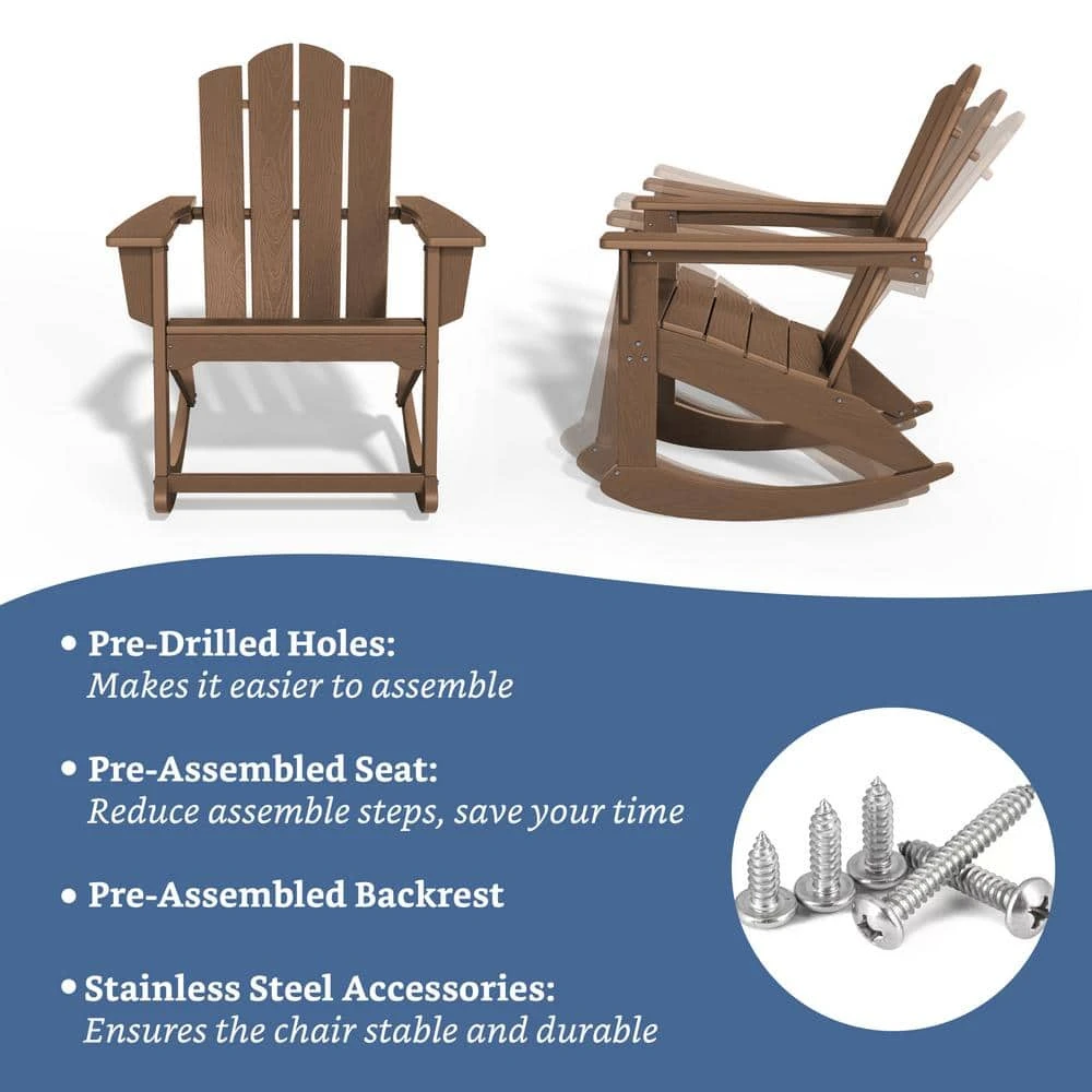 Classic HDPE Plastic Outdoor Rocking Chair In Brown