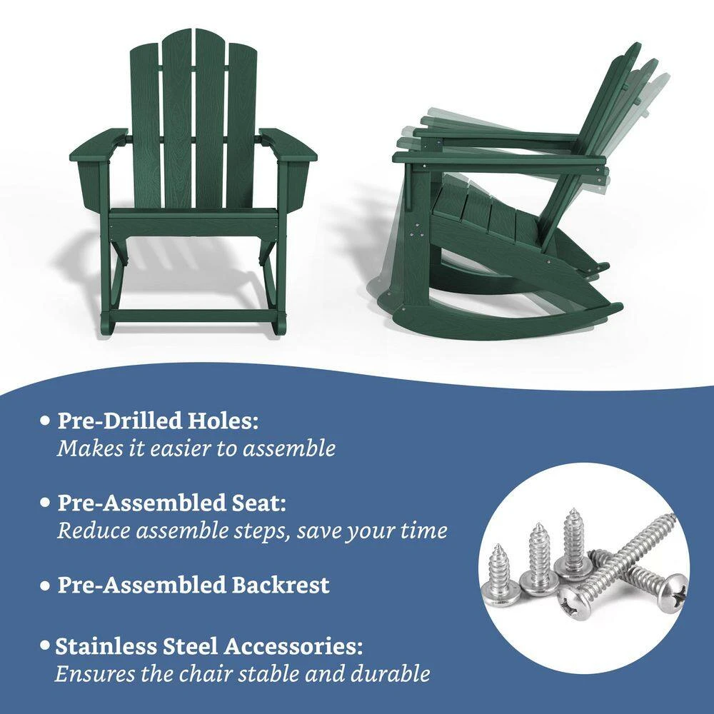 - Eco-friendly: crafted from 98 % recycled HDPE, our classic outdoor rocking chair combines eco-conscious style with long-lasting durability