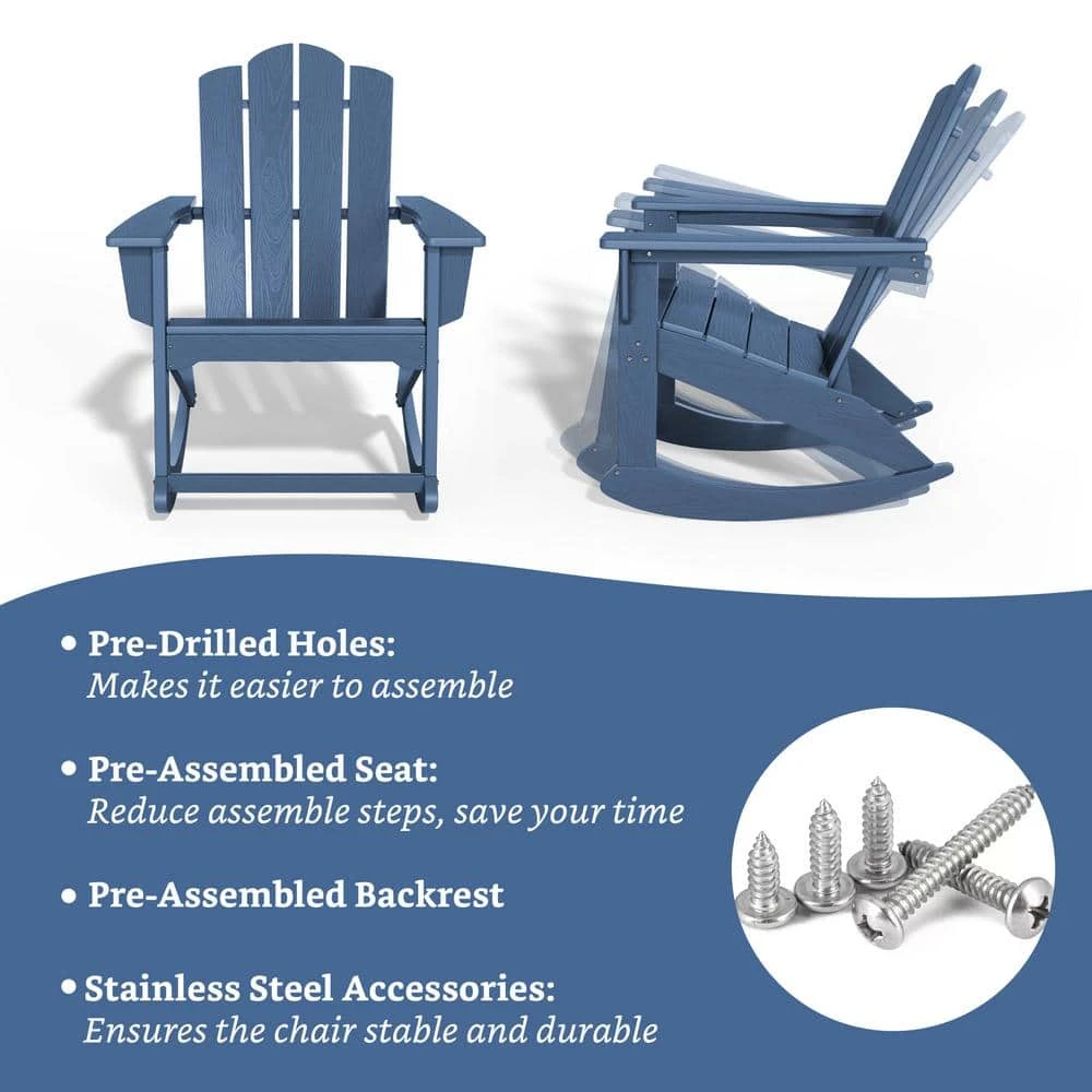 Classic HDPE Plastic Outdoor Rocking Chair In Navy