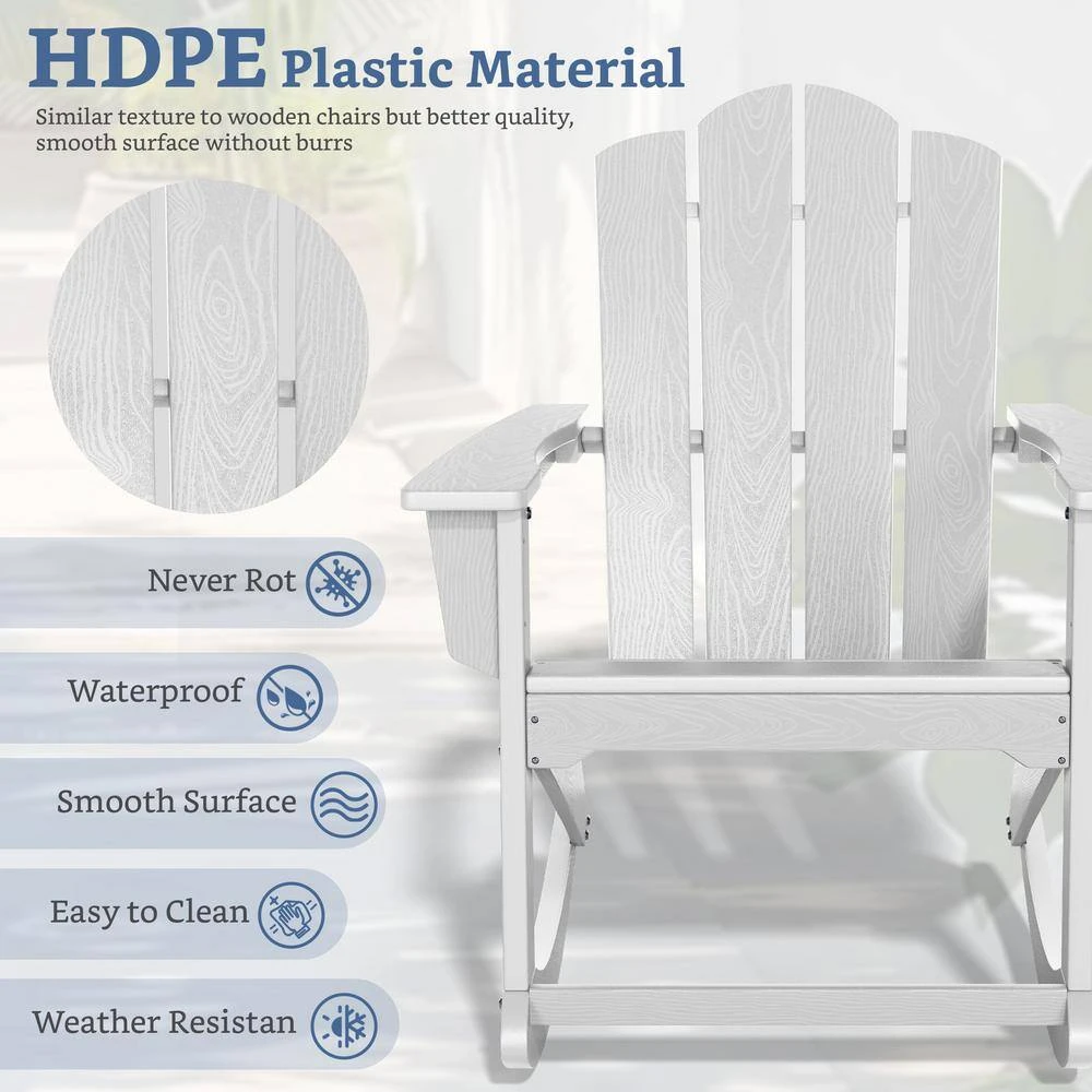 - Eco-friendly: crafted from 98% recycled HDPE, our classic outdoor rocking chair combines eco-conscious style with long-lasting durability