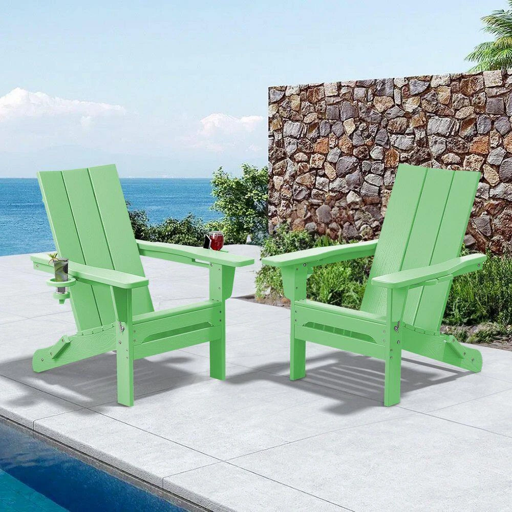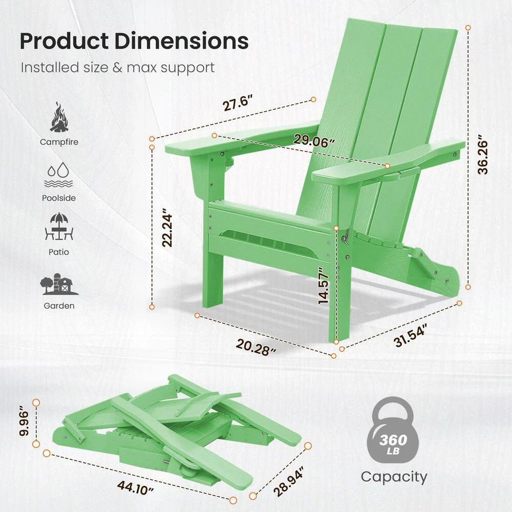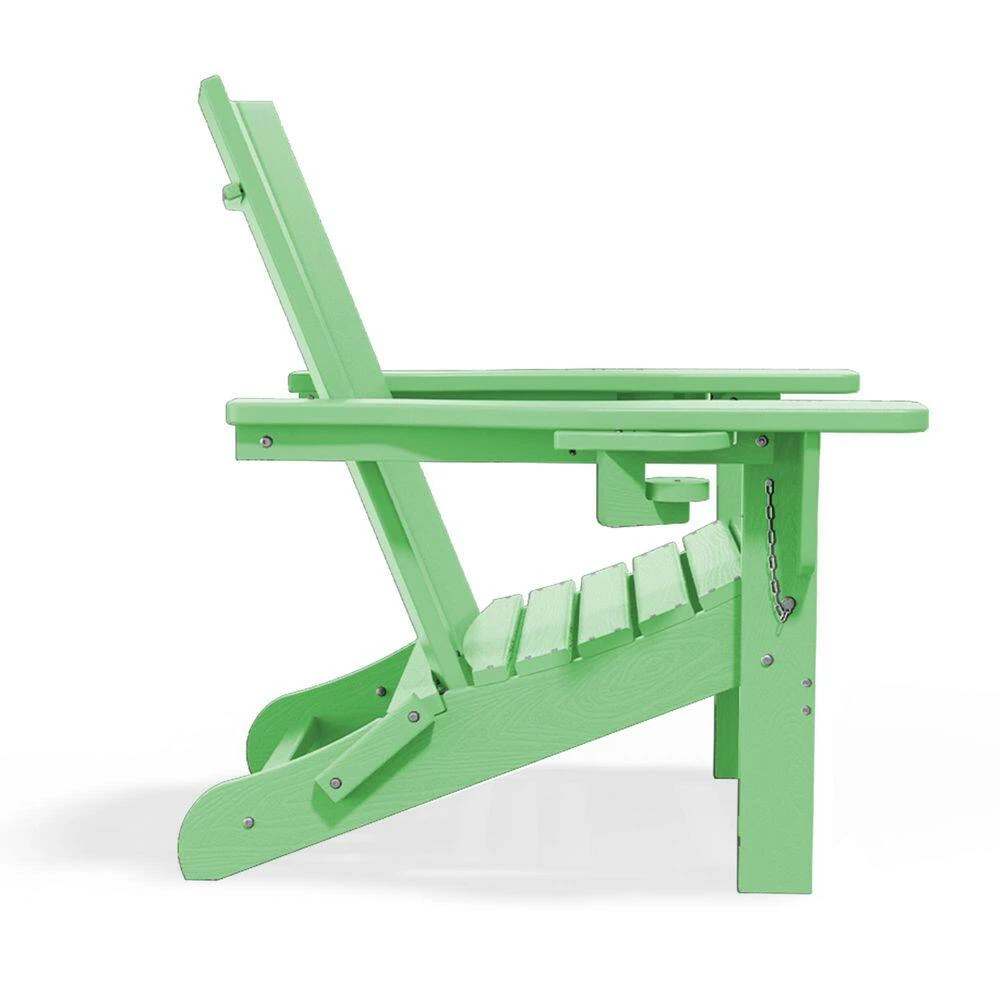 Classic Light Green Folding Plastic Adirondack Chair With Double Cup Holder