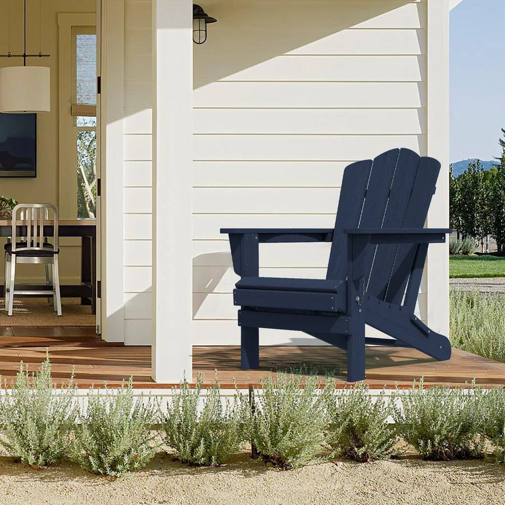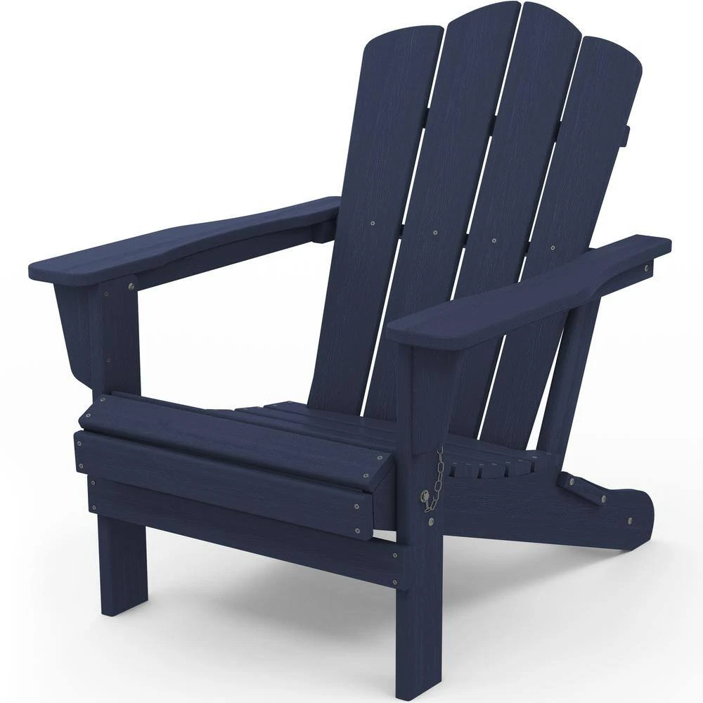 Classic Navy HDPE Folding Plastic Adirondack Chair (1-Pack)