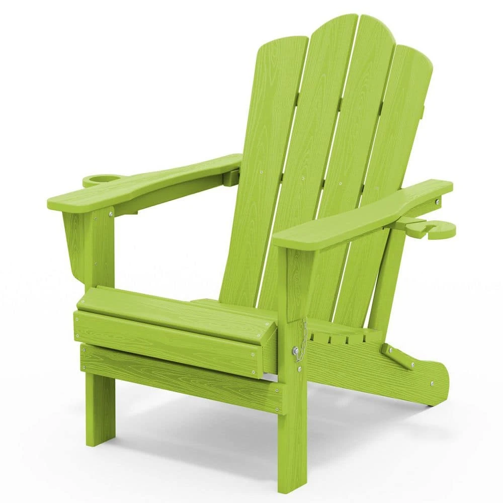 Classic Outdoor HDPE Folding Plastic Adirondack Chair With 2 Cup Holders In Apple Green (Set Of 1)