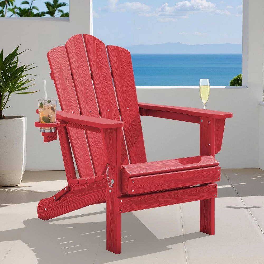 Classic Outdoor HDPE Folding Plastic Adirondack Chair With 2 Cup Holders In Bright Red (Set Of 1)