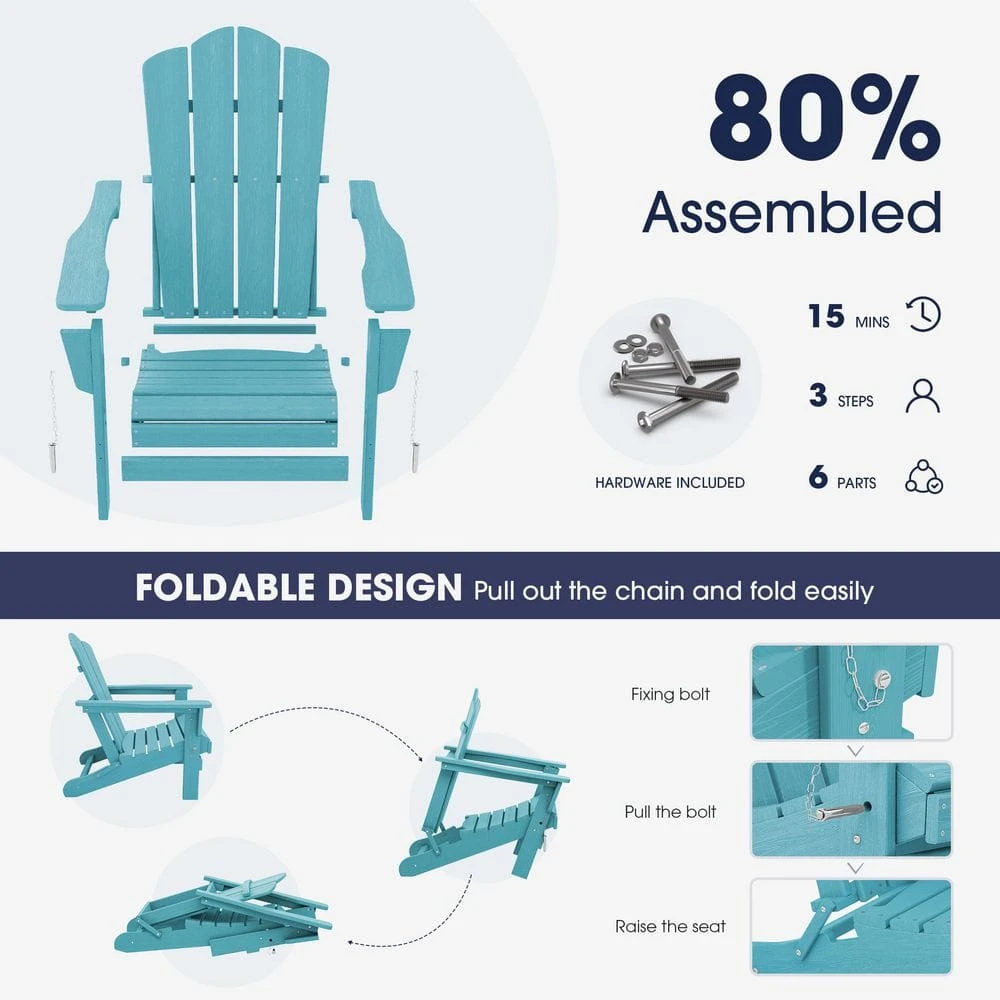 This folding Adirondack chair in a variety of colors adds a touch of bright color to your outdoor space. The retro surface and classic shape of the chair is the perfect choice for your decoration. The waterproof and folding functional attributes protect the product itself and last the use time limit. The curved seat conforms to ergonomics maximizes the comfort for the user. Sit back and soak up the Sun to enjoy outdoor with this amazing chair This stylish patio chair will become a staple in your backyard, patio, porch, lakeside lodges and mountain cabins. Please search the side table to match this adirondack chair by 321043535.