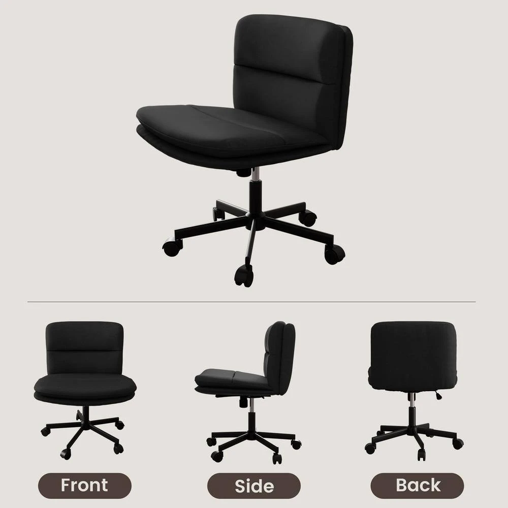 Whether you’re decorating a home office or an office conference room, this modern office chair, ergonomic swivel upholstered chair is the perfect choice. It features a comfortable backrest that provides lumbar support. A generously sized seat provides additional support. The chair is upholstered in polyurethane and padded with foam to provide just the right amount of cushioning. The sophisticated tufted back and seat create a tailored aesthetic. The star-shaped base has 5 curved legs with casters that allow you to roll it throughout your space. Plus, you can change the height of the seat and swivel it 360°.