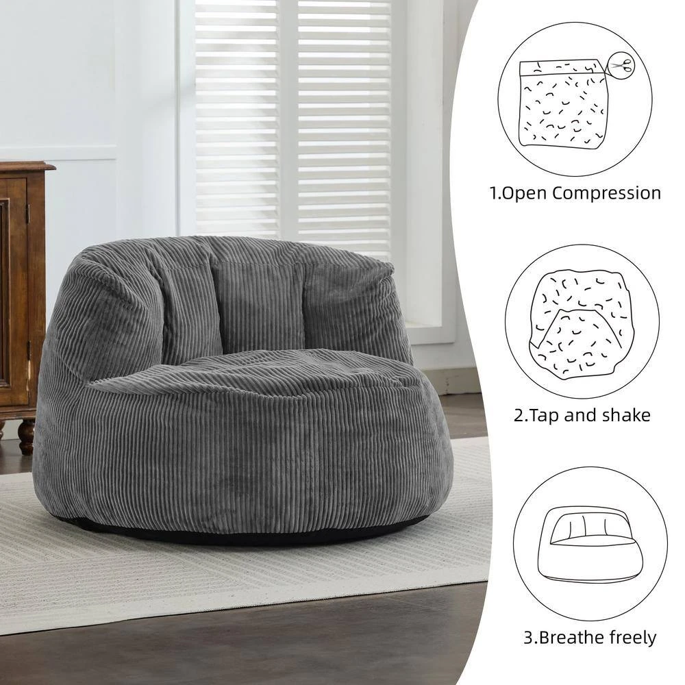 Corduroy Polyester Medium Memory Foam Grey Backrest Style Bean Bag