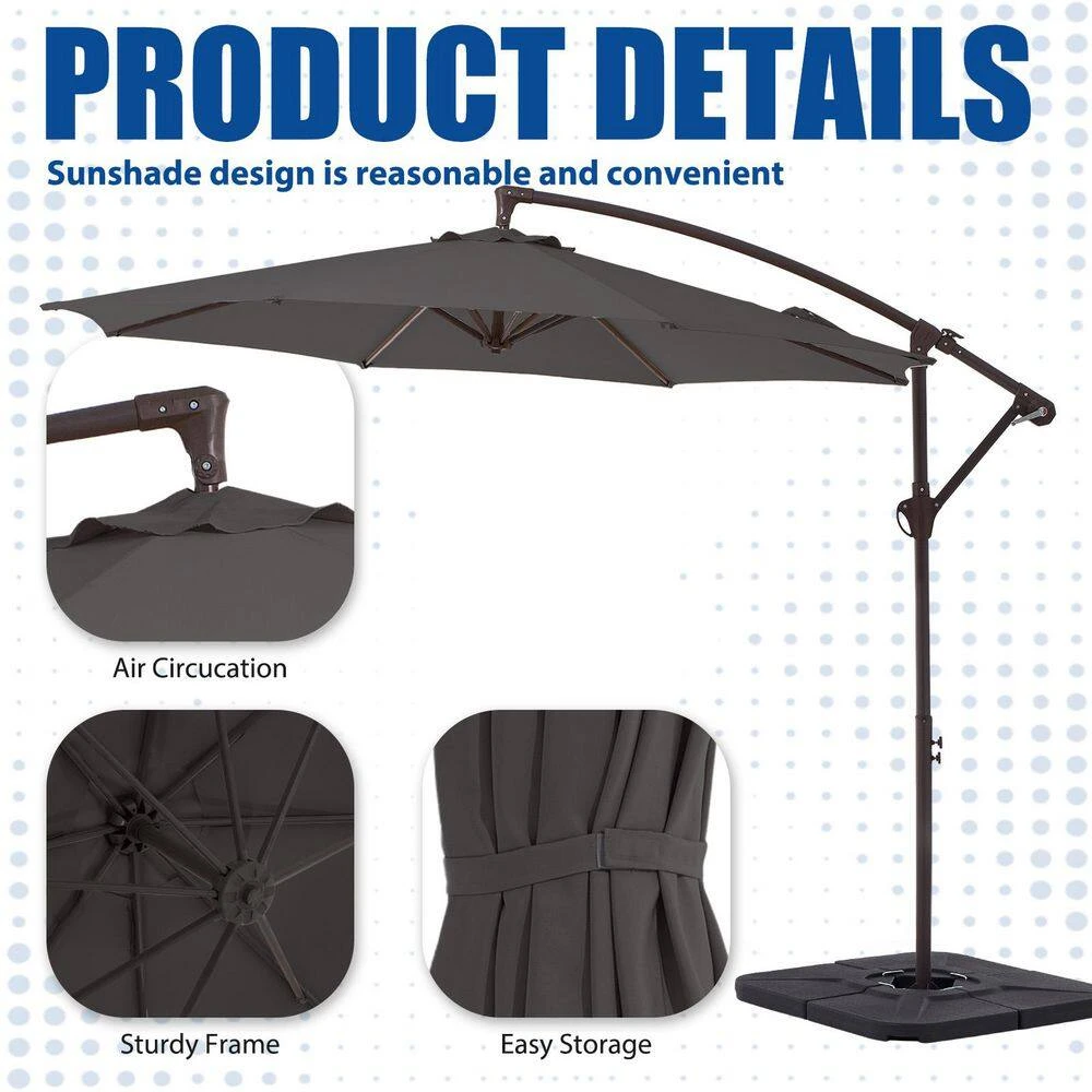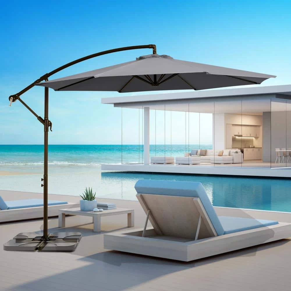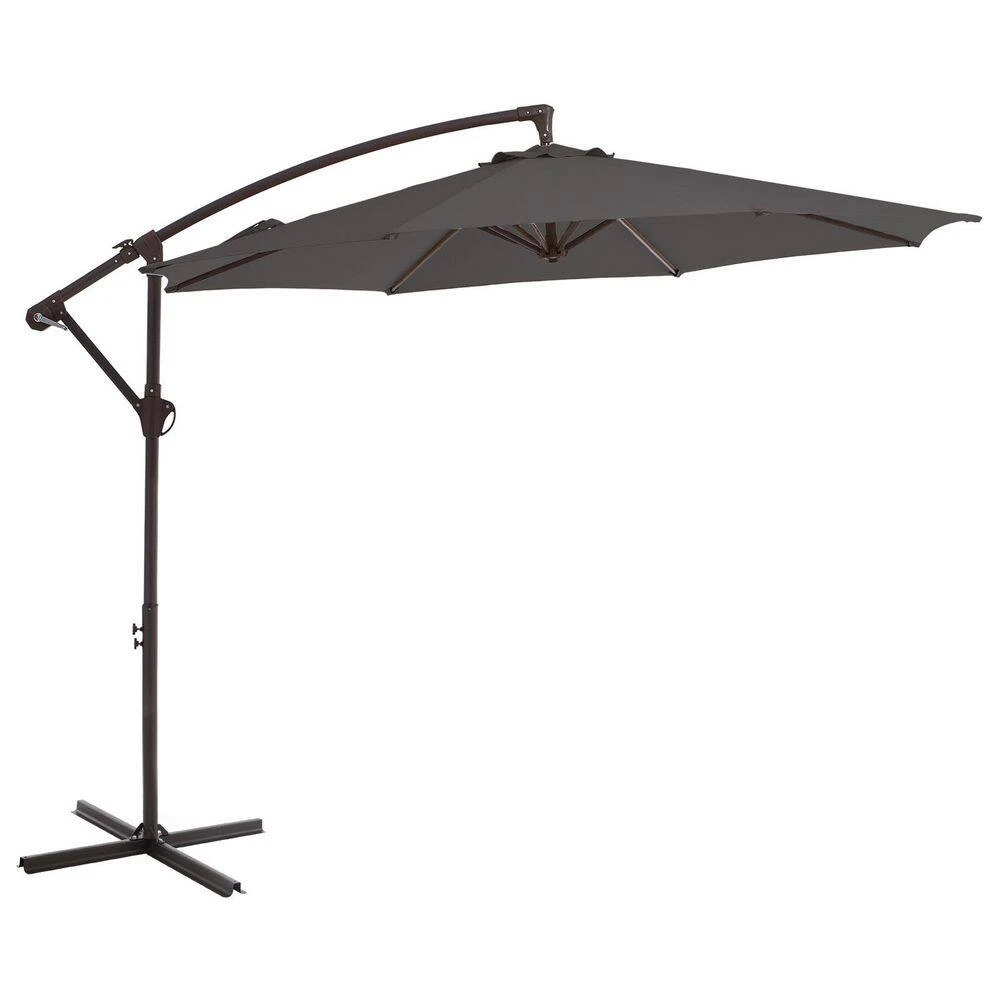 Curvy 10 Ft. Steel Large Cantilever Patio Umbrella With Cross Base In Gray