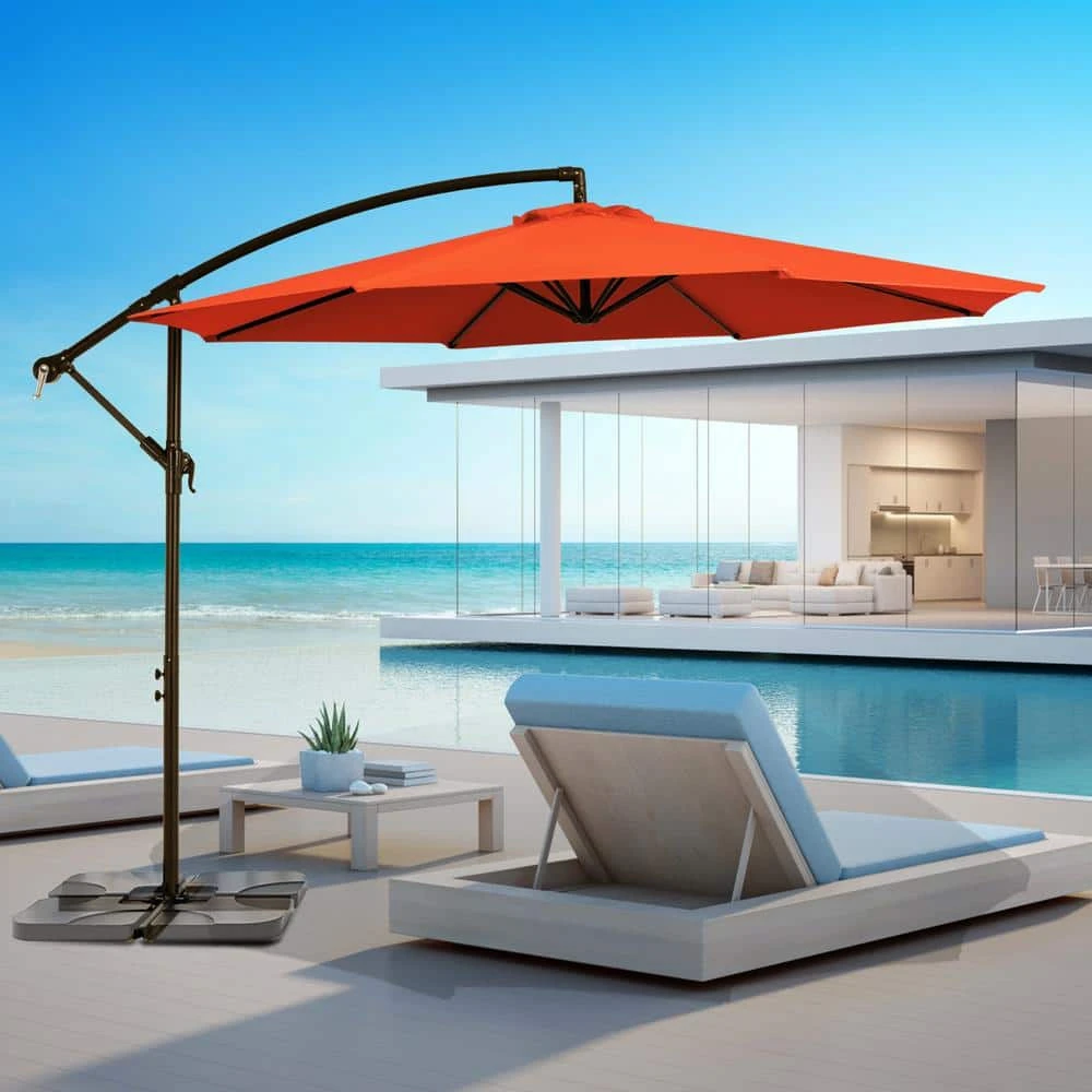 - 10 ft. cantilever umbrella shade your 54 in. to 66 in. round, square or rectangle table with 4 to 6 chairs, perfect for outdoor parties, business events, weddings and more