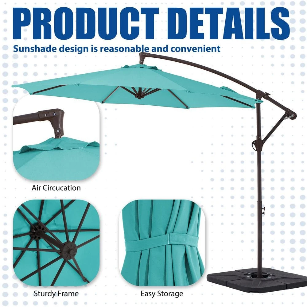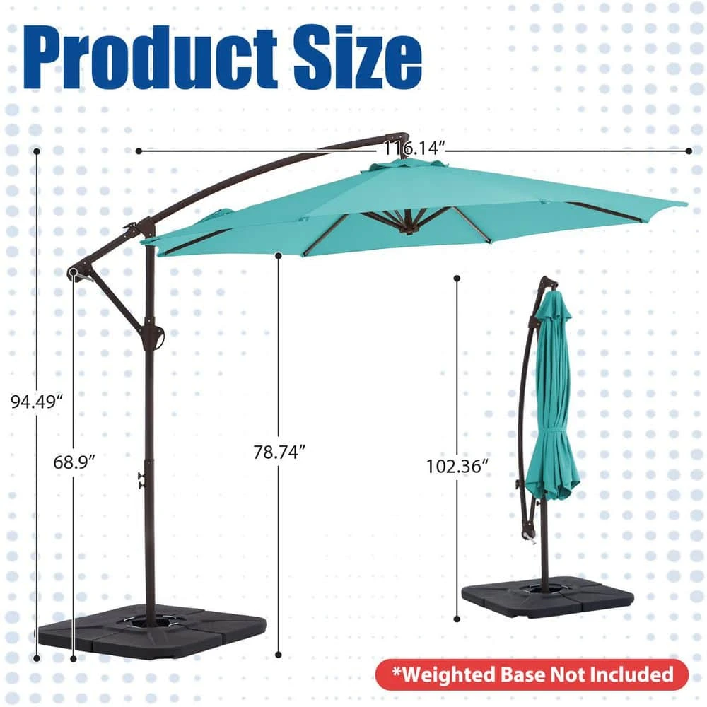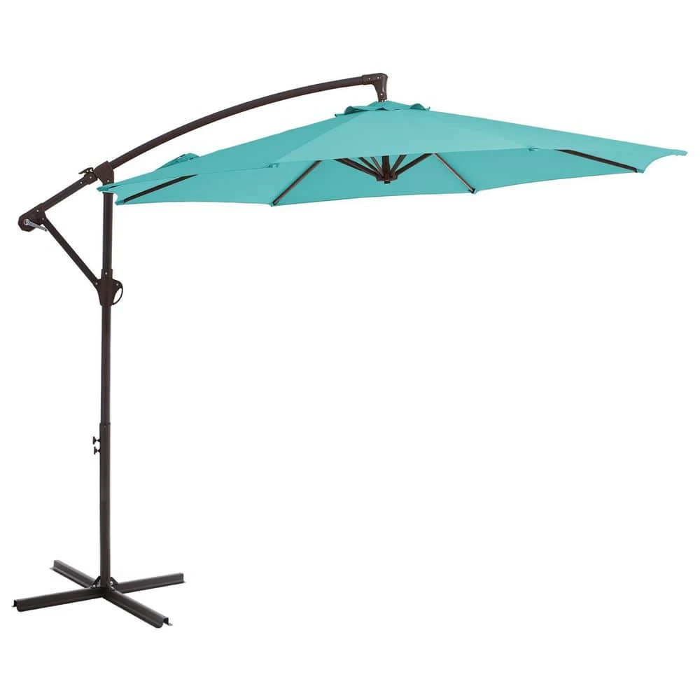 Curvy 10 Ft. Steel Large Cantilever Patio Umbrella With Cross Base In Peacock Blue