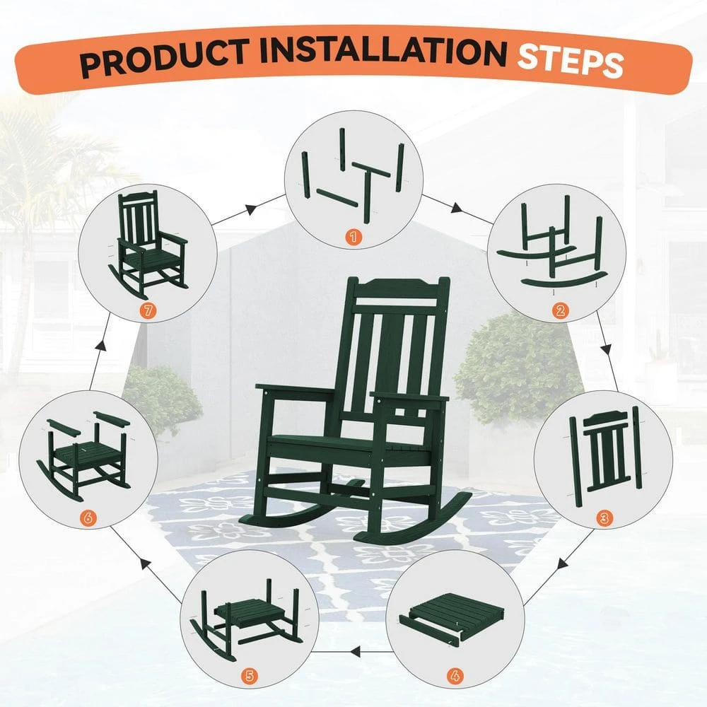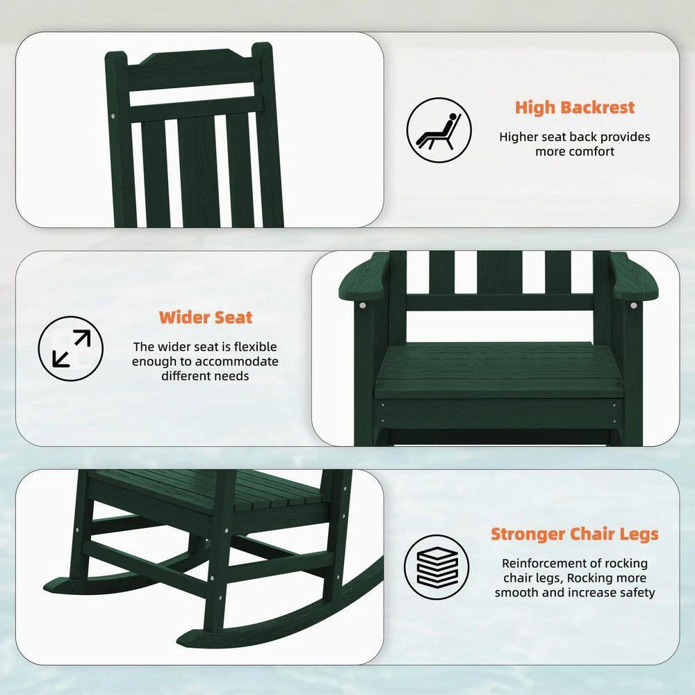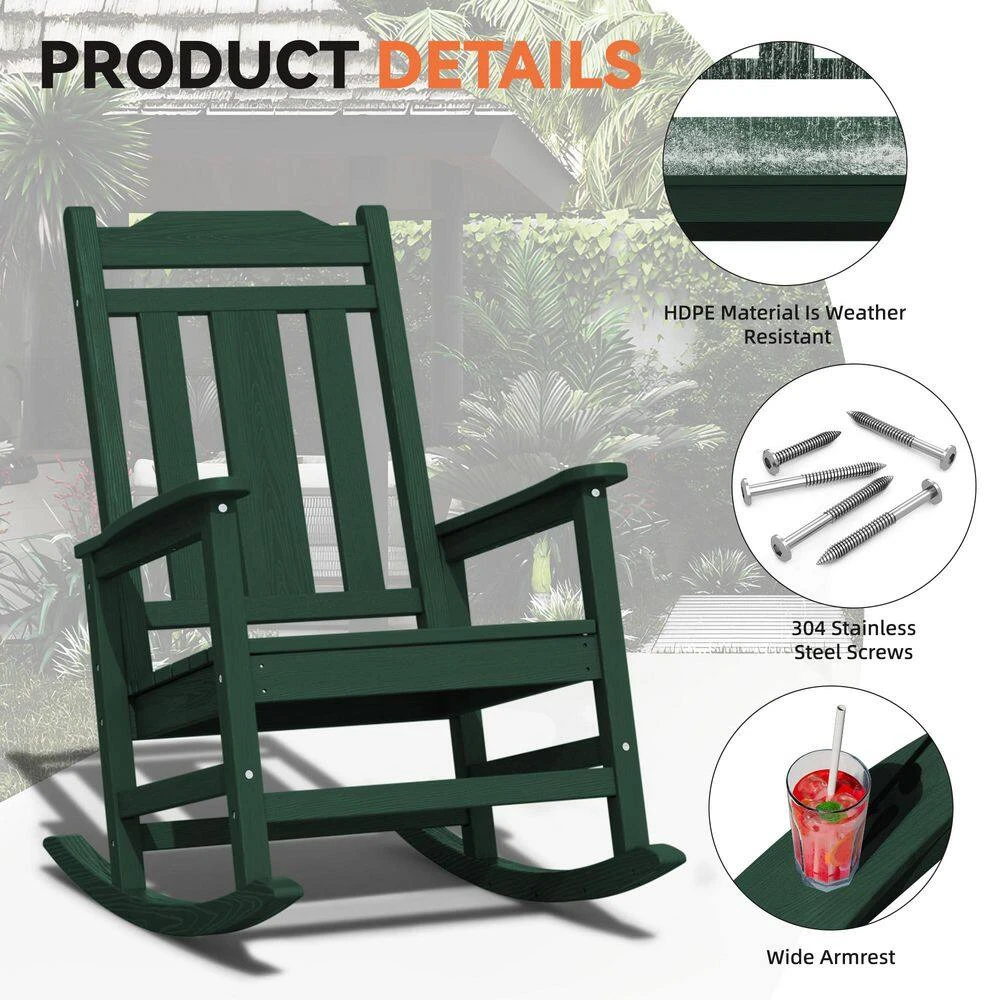 - Colorful Options: Our diverse range of colors allows this rocking chair to blend seamlessly with a variety of outdoor decor styles, while also allowing you to express your individuality.