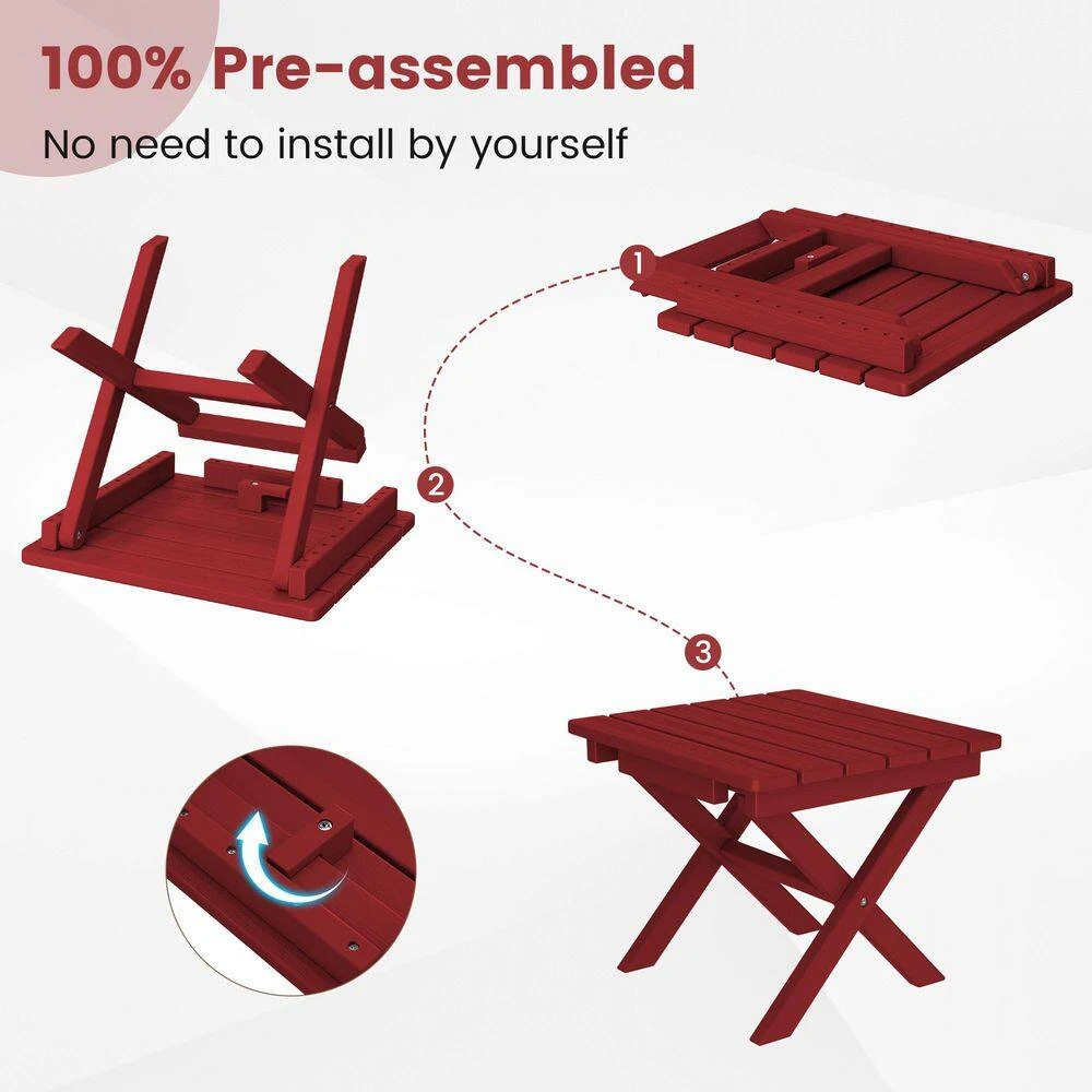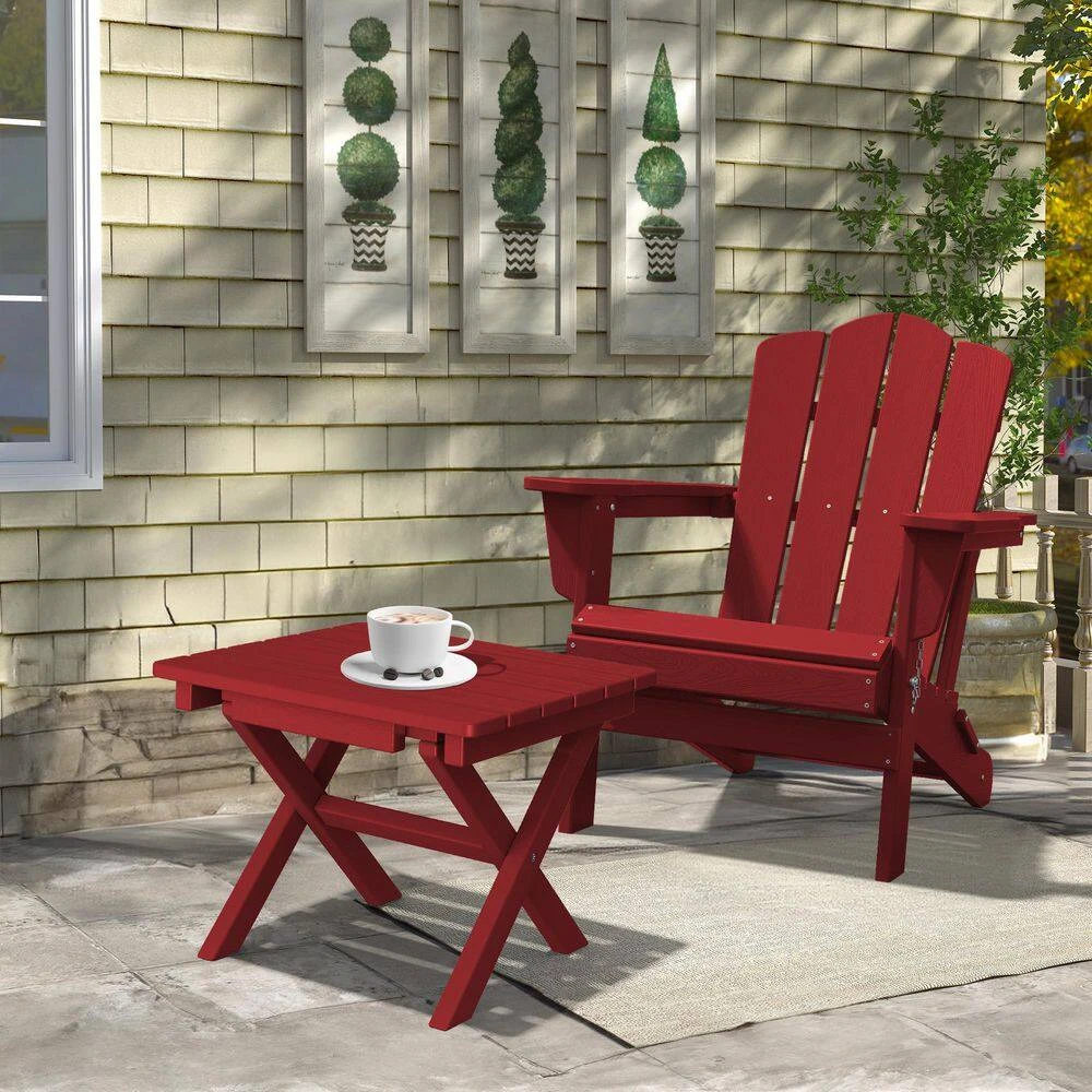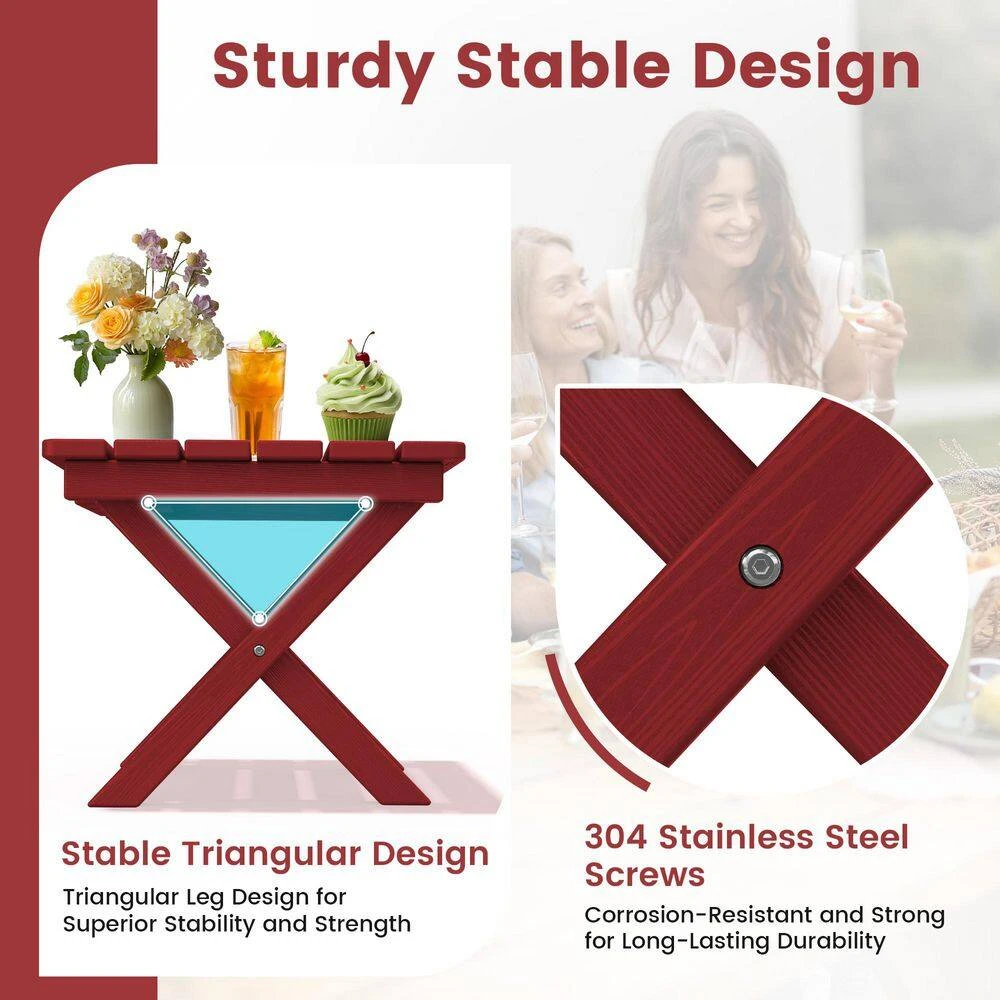 Dark Red HDPE Plastic Portable Patio End Table Folding Outdoor Coffee Table (Set Of 2)