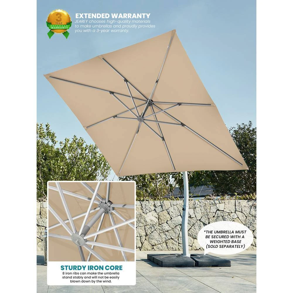 Get a new cantilever umbrella for your backyard or garden now. A wonderful solution for any leisure time outside under bright Sunshine. Even this umbrella can be used for commercial use, but outside of your store for those customers who want to sit outside the room. Please note: for better use, this umbrella needs an extra counterweight to put on the base to make the umbrella stable.