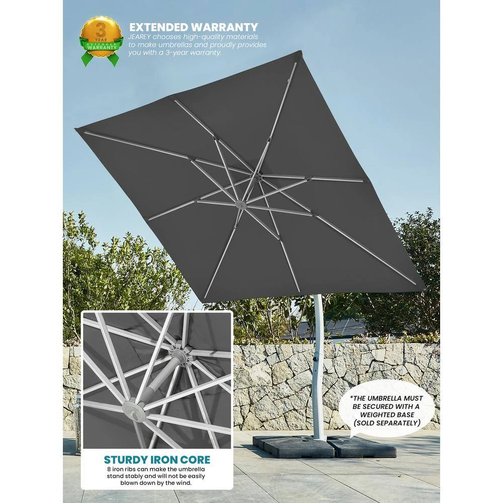 Get a new cantilever umbrella for your backyard or garden now. A wonderful solution for any leisure time outside under bright Sunshine. Even this umbrella can be used for commercial use, but outside of your store for those customers who want to sit outside the room. Please note: for better use, this umbrella needs an extra counterweight to put on the base to make the umbrella stable.