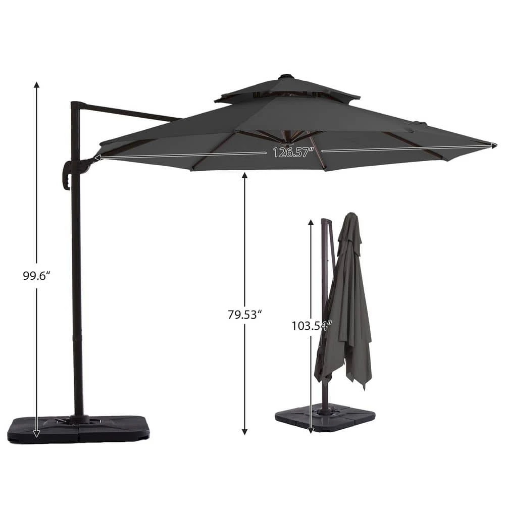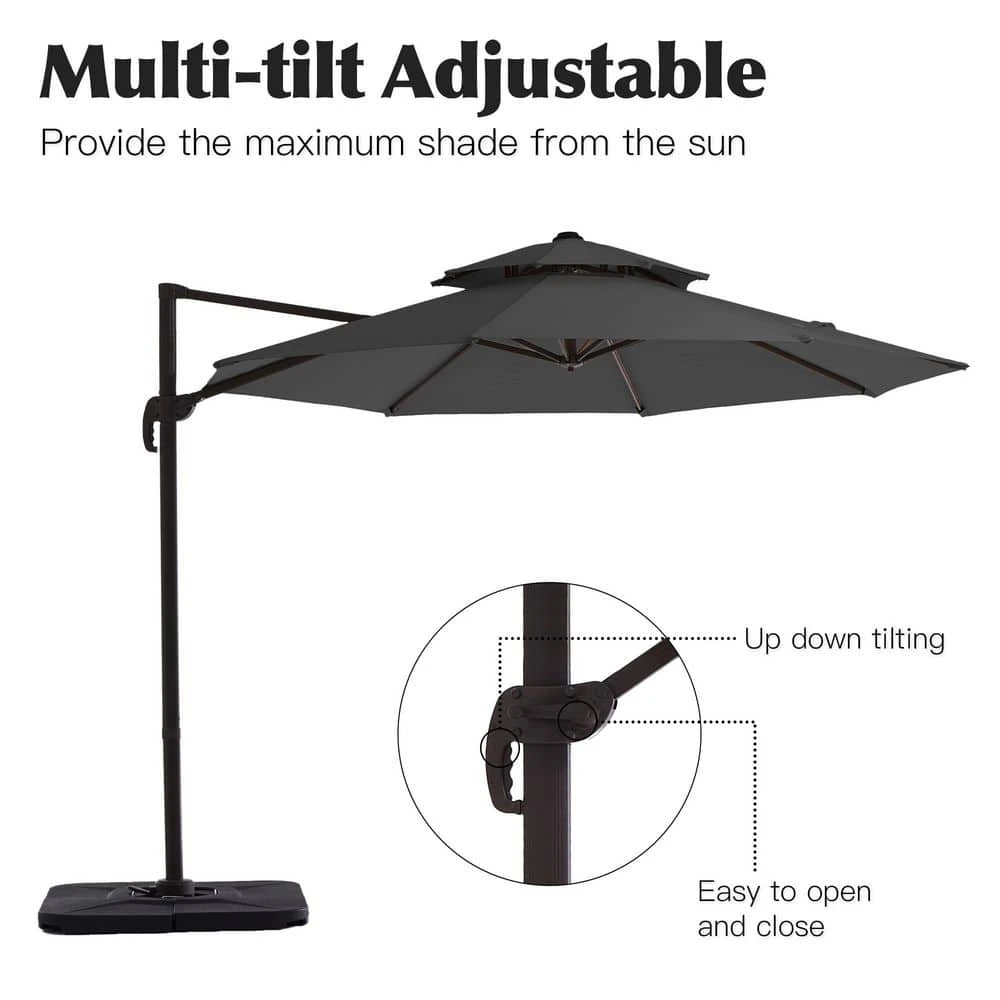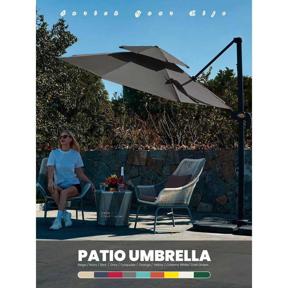 Transform your patio, deck, or poolside into a premium outdoor retreat with this complete All-in-One Cantilever Umbrella. Engineered for ultimate convenience and total control, this umbrella provides a massive shade footprint. Enjoy meals, conversations, and relaxation outdoors, comfortably shielded from the sun from dawn until dusk. This kit includes everything you need-the umbrella, the weighted base, and a protective cover- to upgrade your outdoor living space.