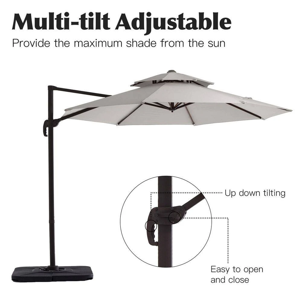 - Full 360° Rotation and Five Height Tilt : Easily rotate the umbrella canopy a full circle with a convenient foot pedal allowing you to follow the sun’s movement throughout the day for continuous, versatile shade coverage.