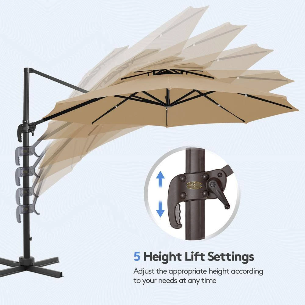 - Weighted base included – Our cantilever umbrella come with a weighted base for stability. You do not need to purchase separately