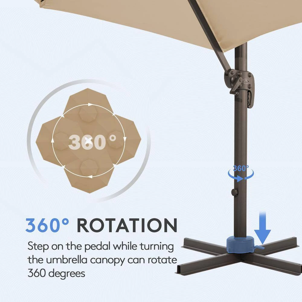 - 360° rotation – gently step on the foot pedal below the deluxe offset umbrella to rotate, 360° rotation for easier shading area control