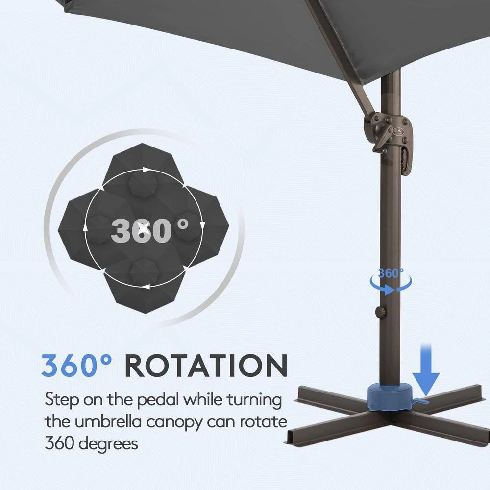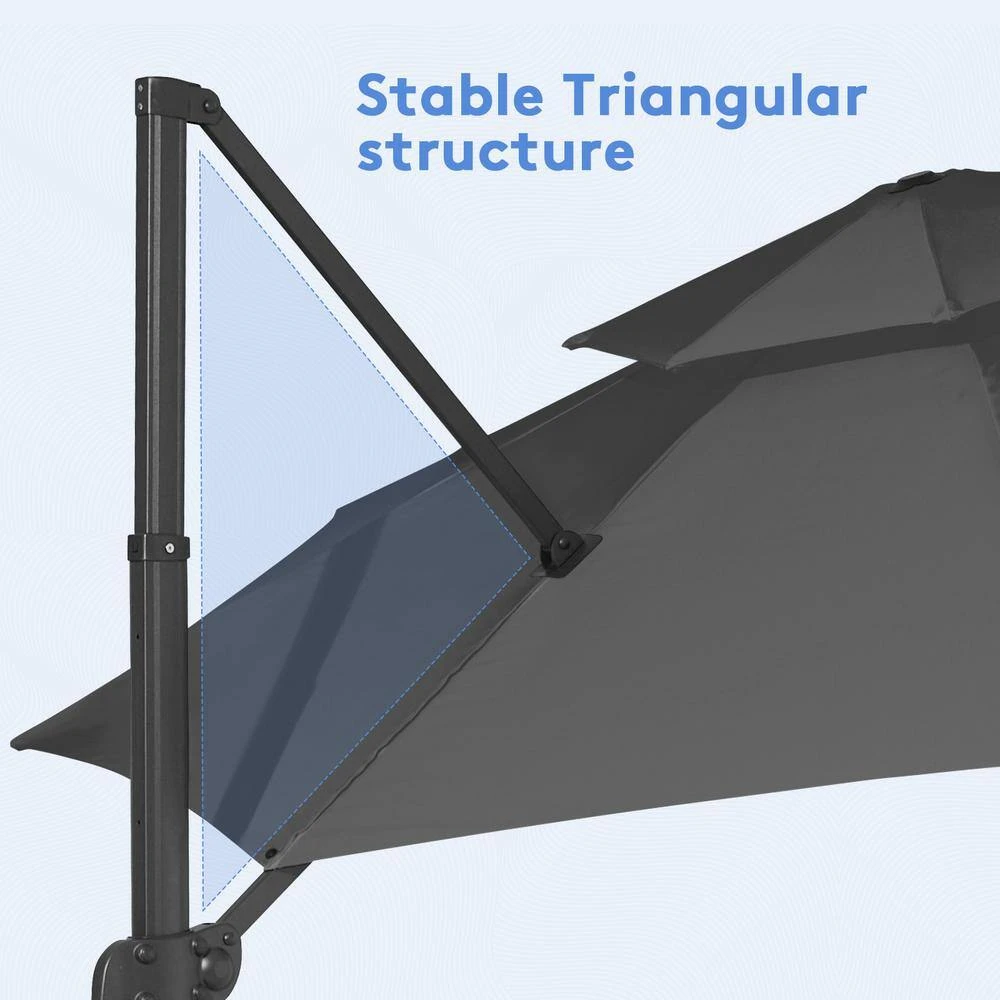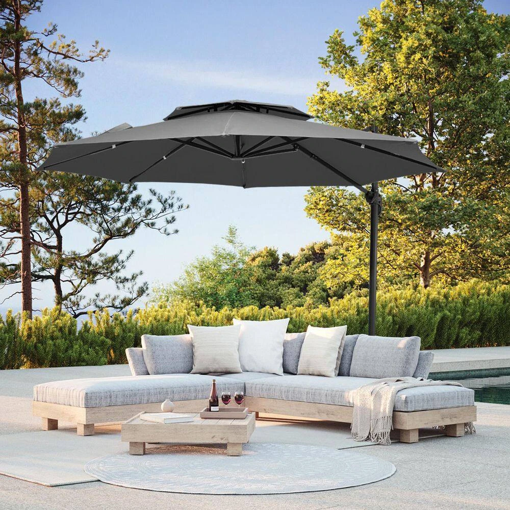 Double Top 11 Ft.Outdoor Cantilever Umbrella With Base And Cover,Heavy-Duty 360° Rotation Patio Umbrella In Gray