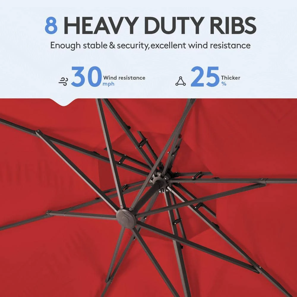 - Weighted base included – Our cantilever umbrella come with a weighted base for stability. You do not need to purchase separately
