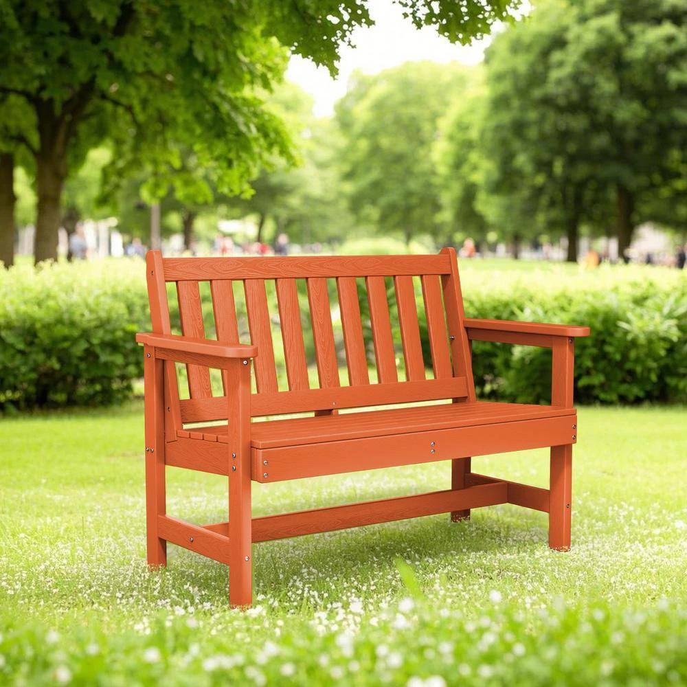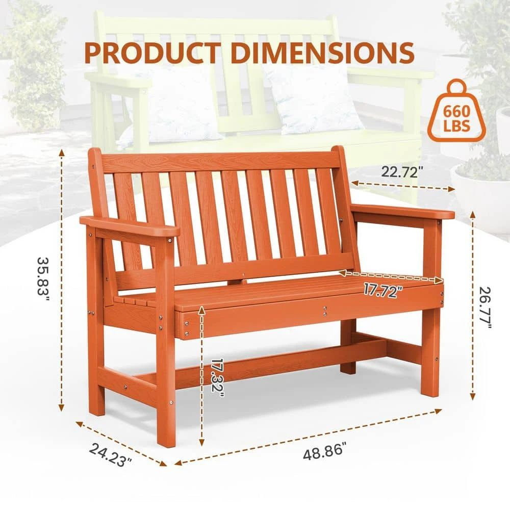 Garden Bench All-Weather HDPE 2-Person Plastic Outdoor Bench In Dark Orange