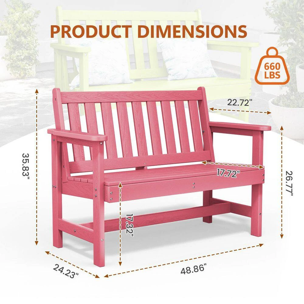 Transform your outdoor space with the HDPE Outdoor Garden Bench, the perfect blend of elegance, durability, and unmatched comfort This versatile 2-seater bench is crafted from high-density polyethylene (HDPE) material, featuring a wood-like grain that enhances any garden or patio. Available in 16 vibrant colors, you can easily find the perfect match for your outdoor decor. Designed for comfort with ergonomic back support, it’s easy to clean, maintain, and install, making it the ideal choice for those seeking both style and convenience.