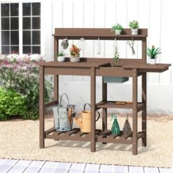 40.94 In. W X 47.24 In. H Brown HDPE Weather-Resistant Garden Potting Bench Table With Storage Shelf