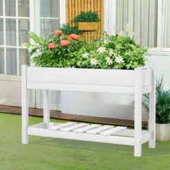 45 In. X 18 In. X 29 In. Outdoor Plastic Raised Garden Bed In White