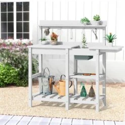 40.94 In. W X 47.24 In. H White HDPE Weather-Resistant Garden Potting Bench Table With Storage Shelf