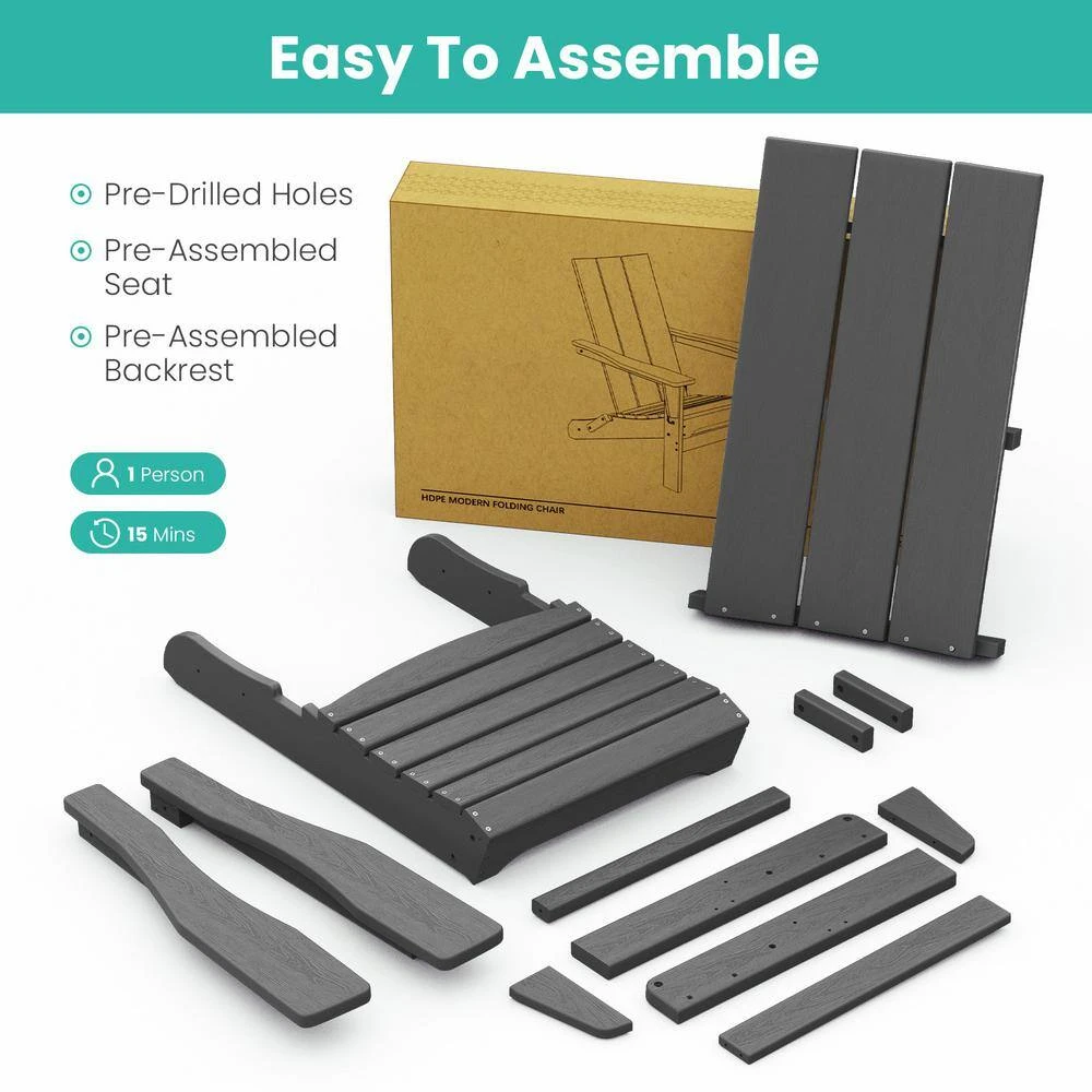 Gray Classic Folding HDPE Plastic Adirondack Chair