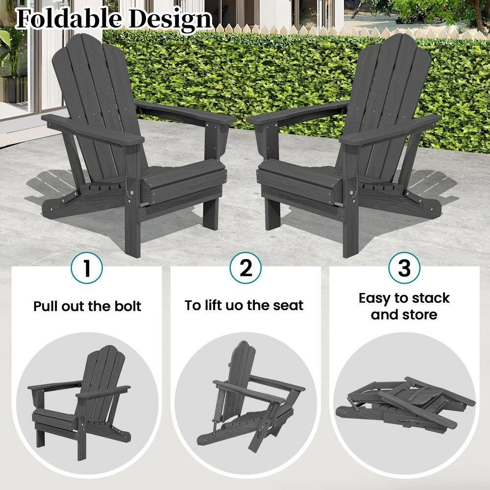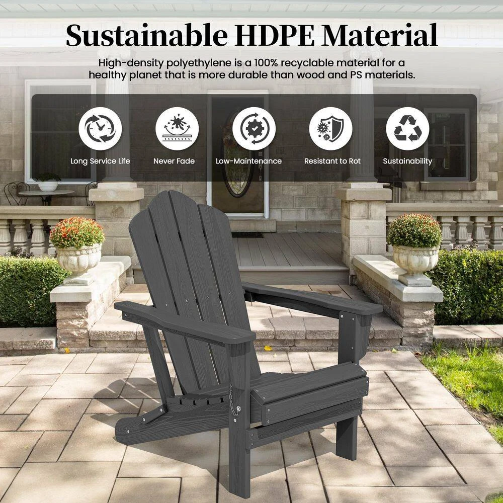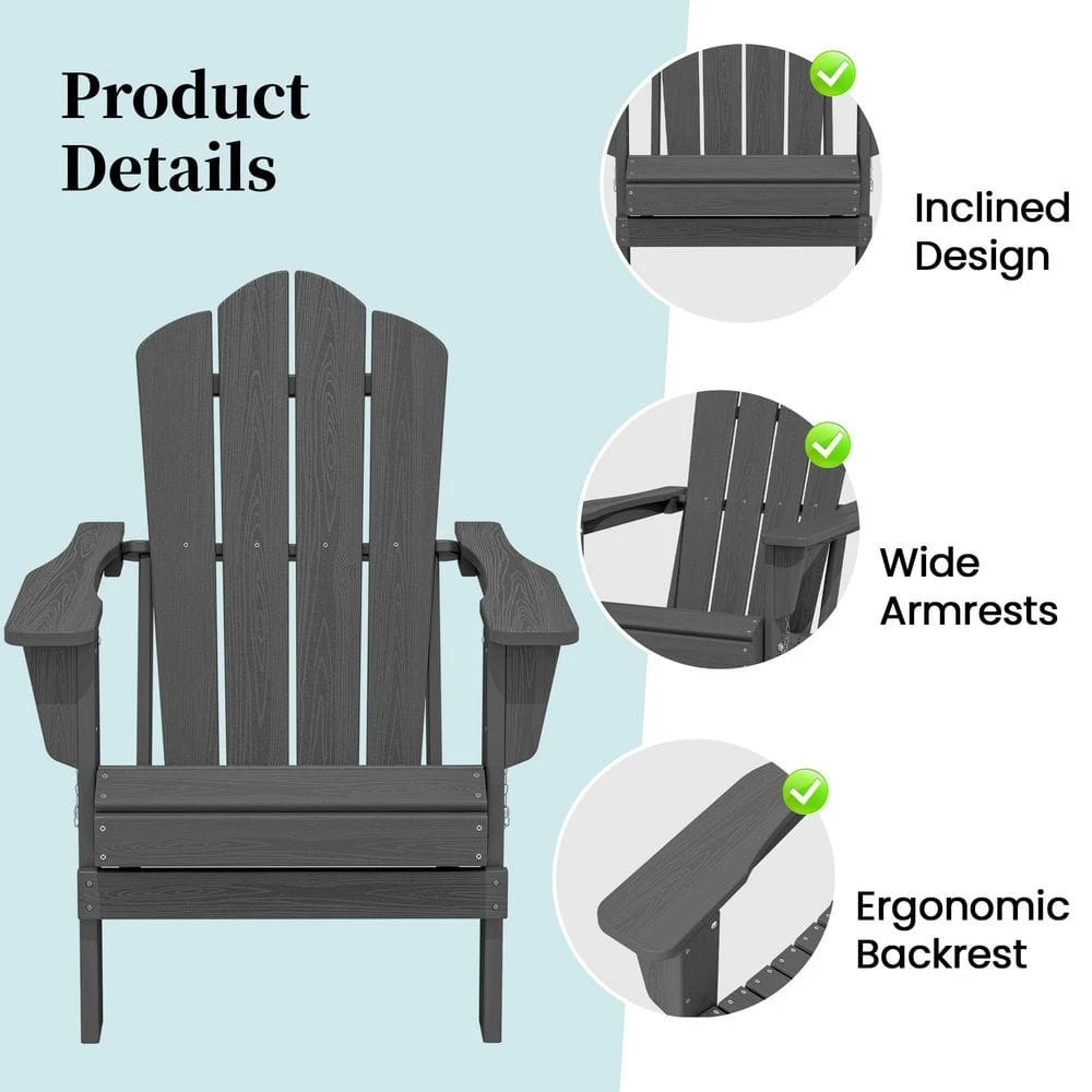 Gray Folding HDPE Outdoor Patio Plastic Adirondack Chair With Ergonomic Design (1-Pack)