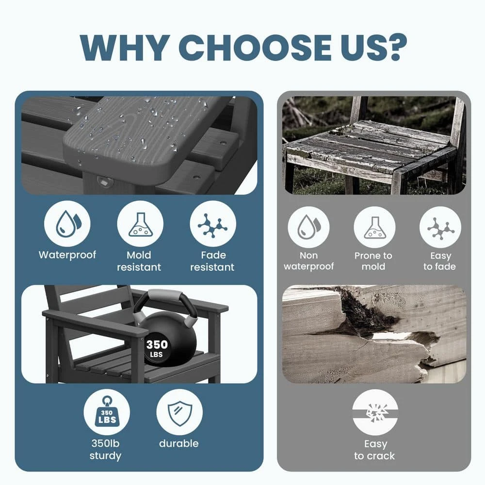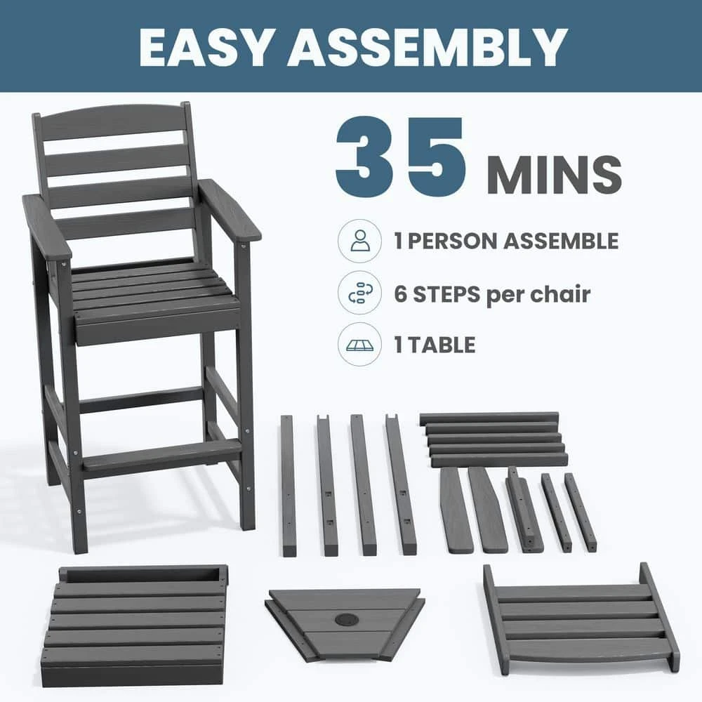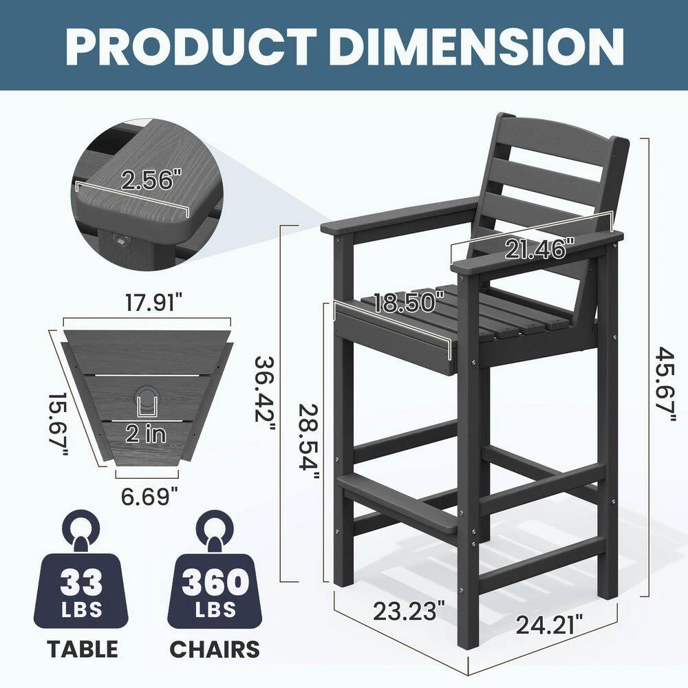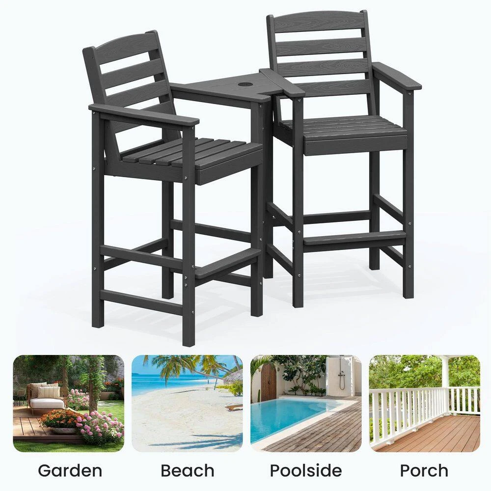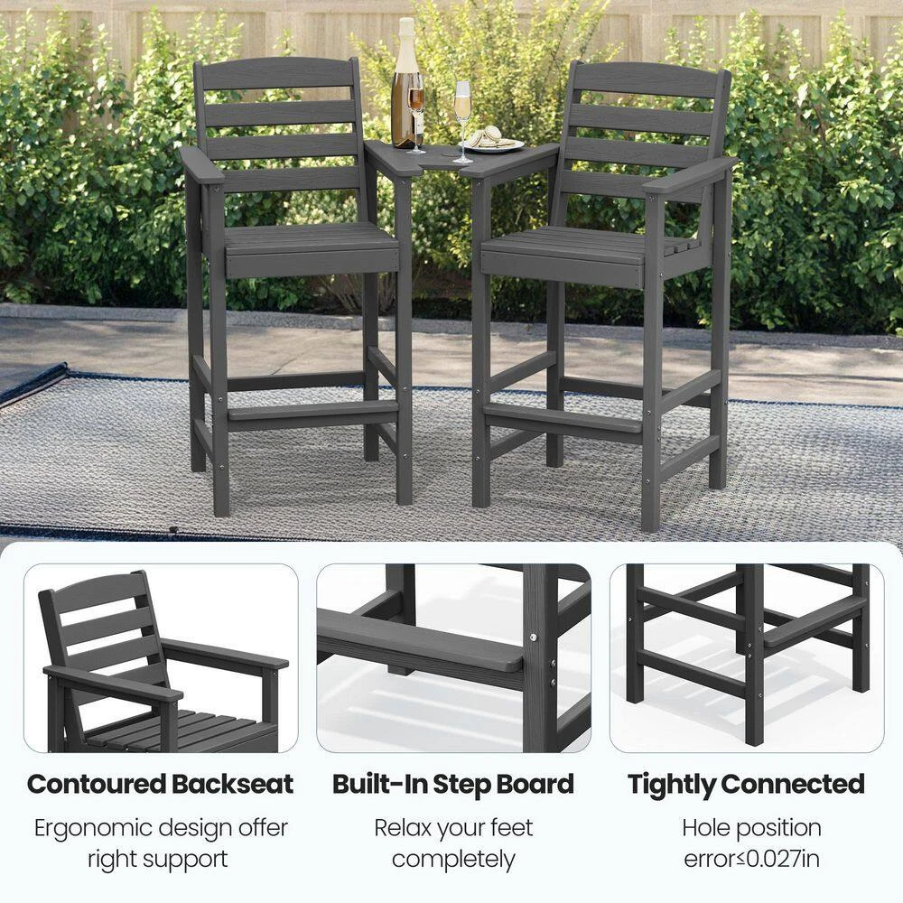 Gray Modern HDPE Plastic Adirondack Chairs, Outdoor Bar Stools With Connecting Tray (Set Of 2)