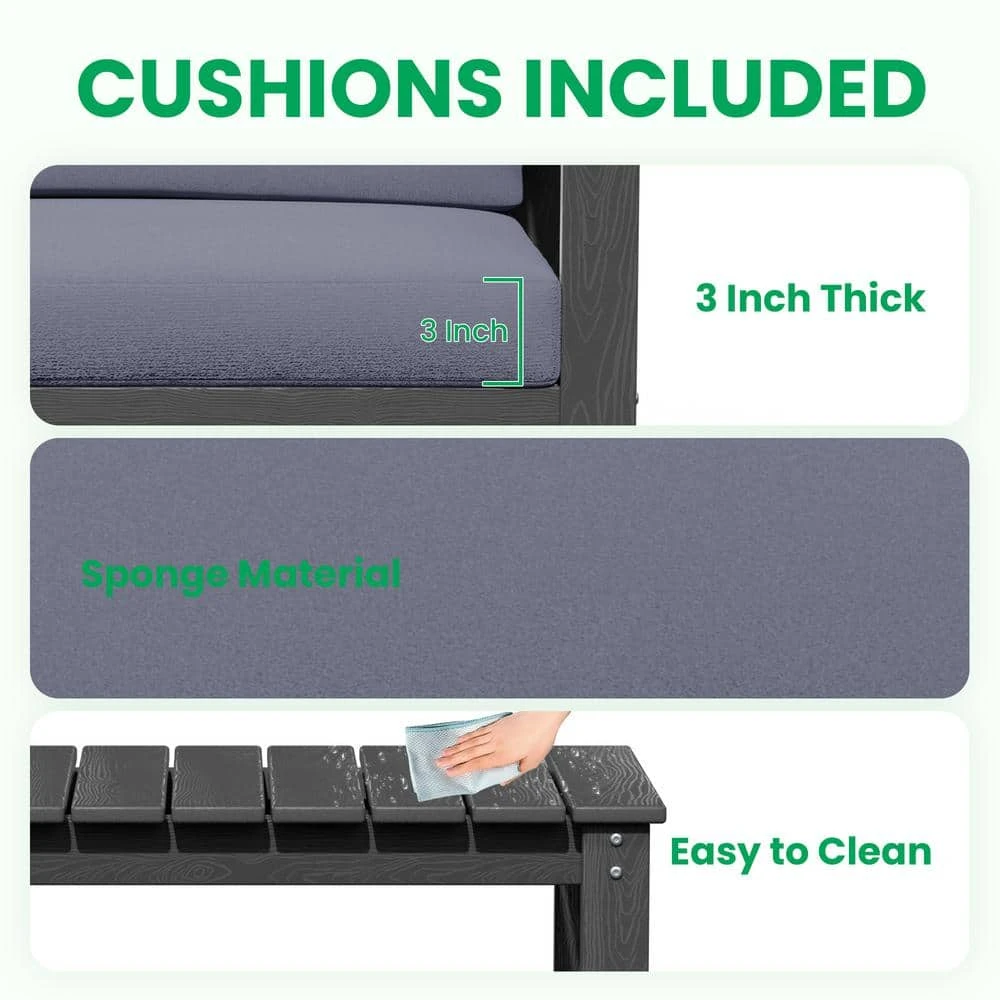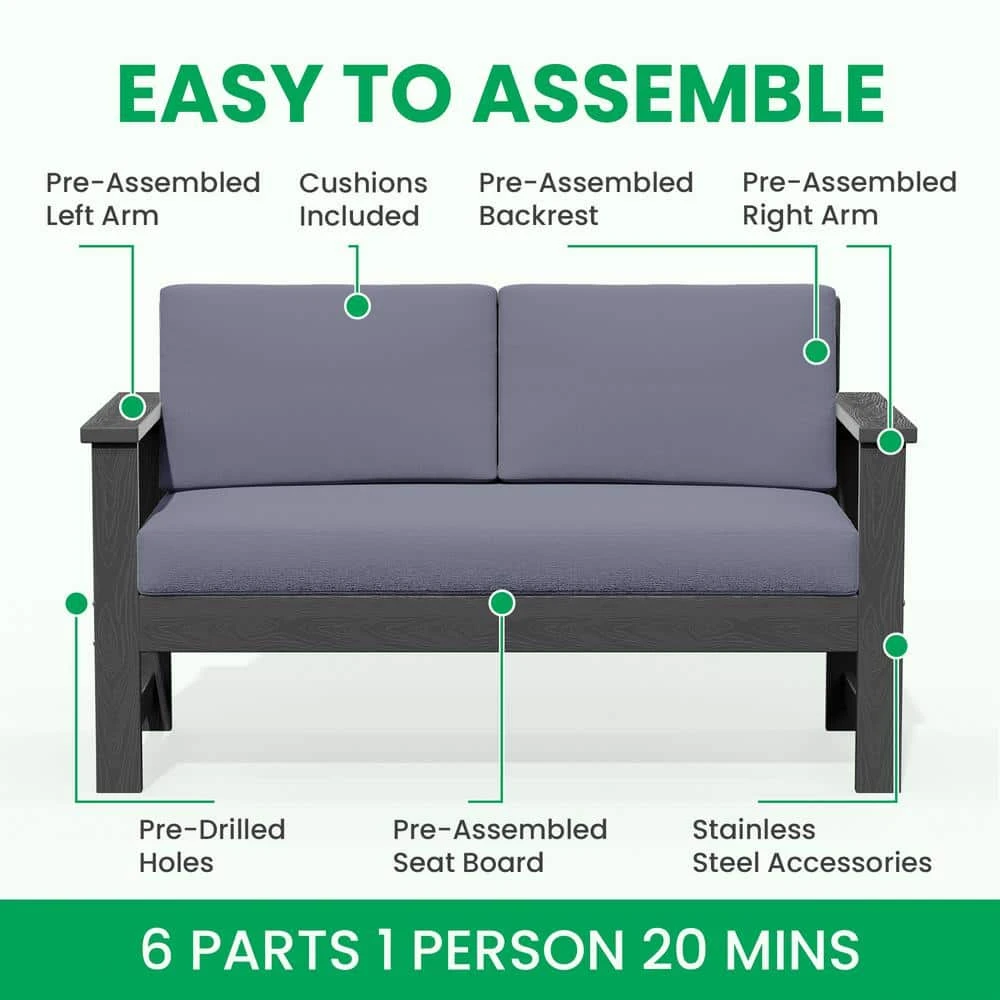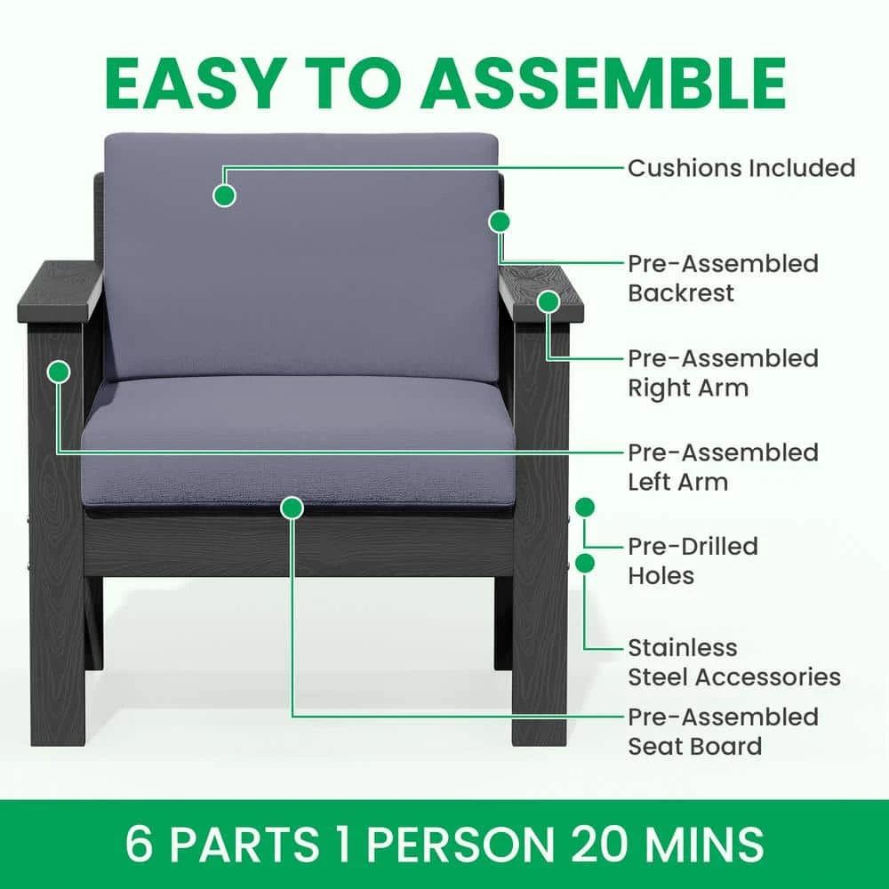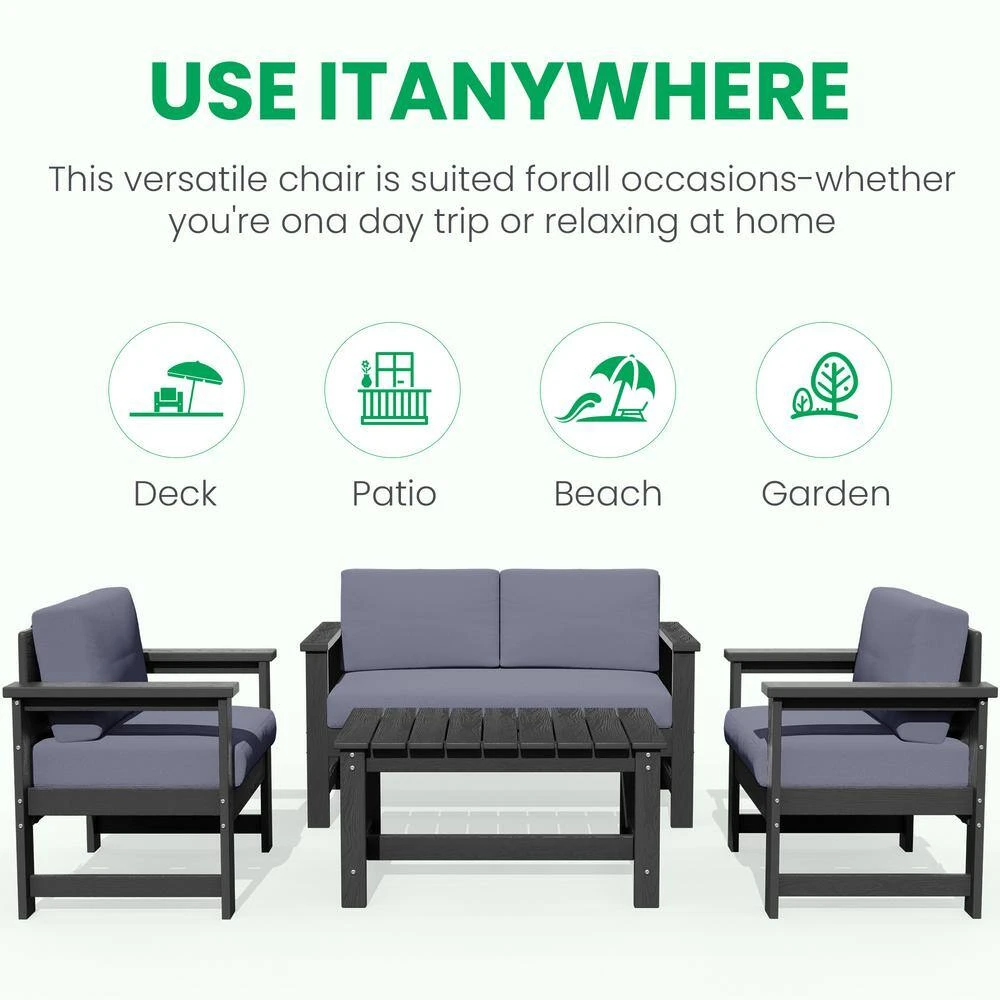 Grey 4-Piece HDPE Plastic Patio Conversation Set With Grey Cushions
