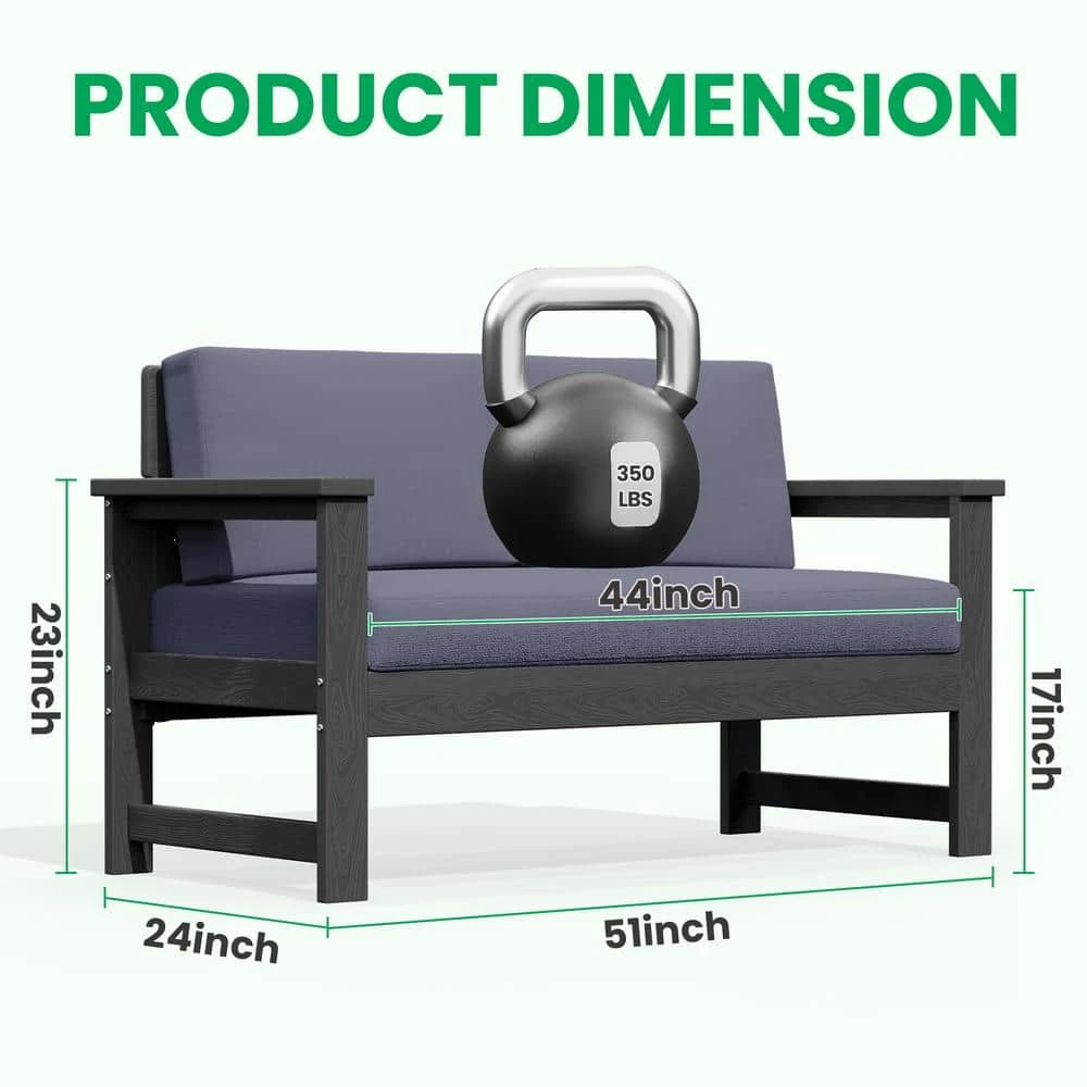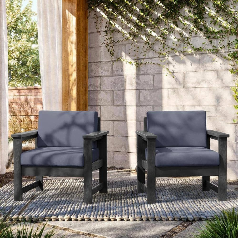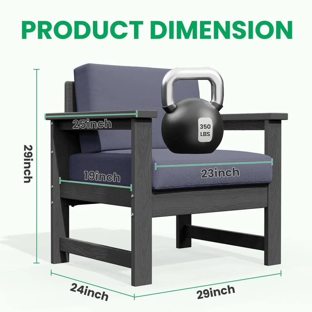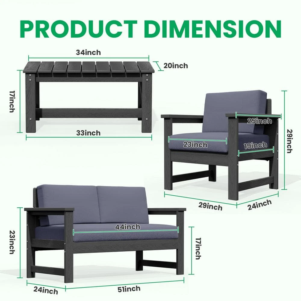 Grey 4-Piece HDPE Plastic Patio Conversation Set With Grey Cushions
