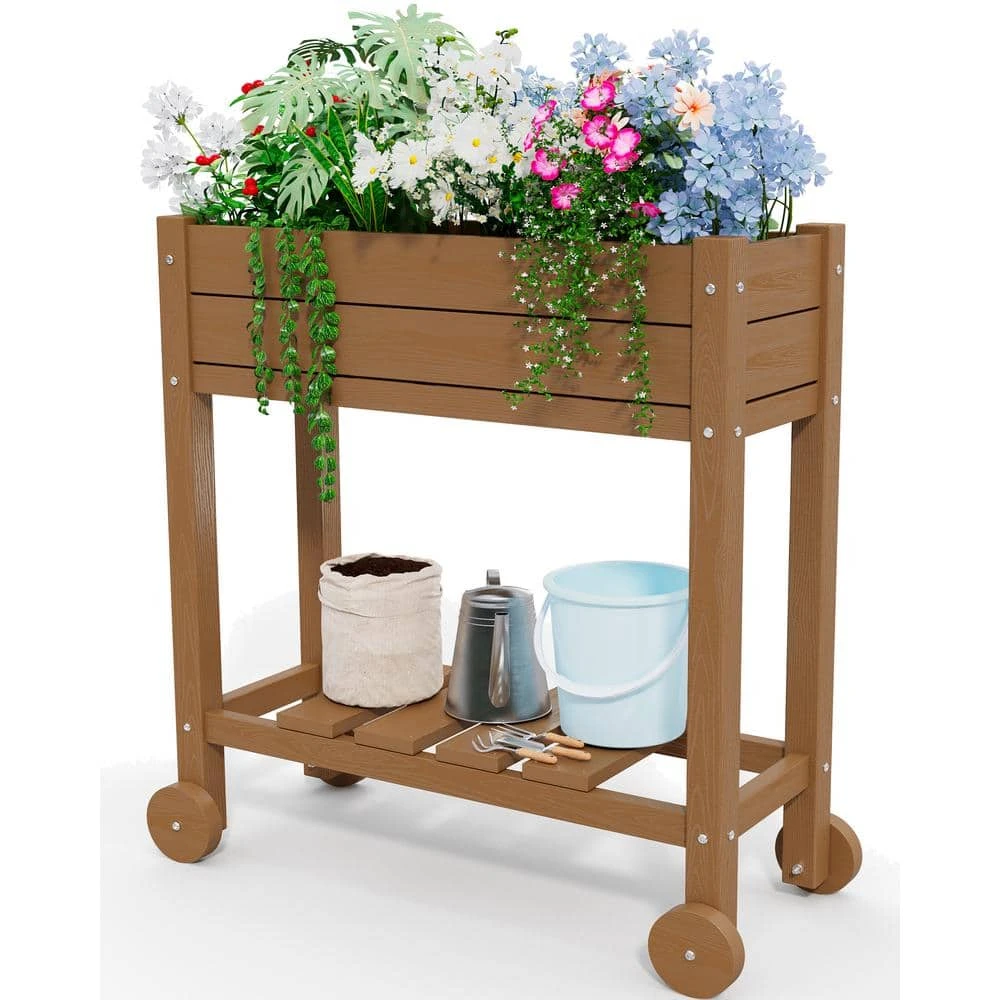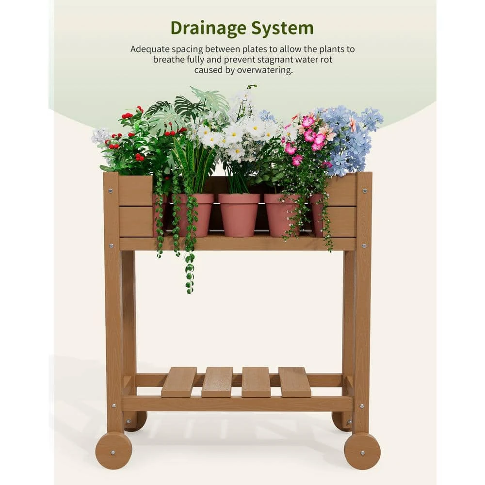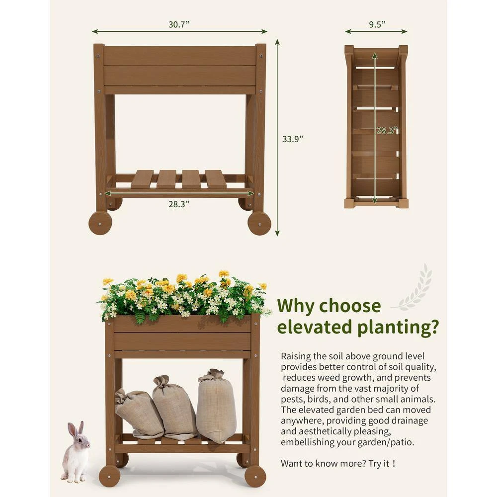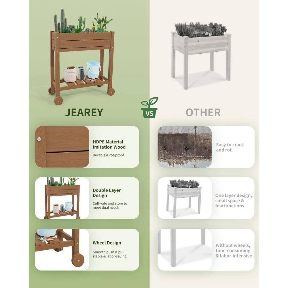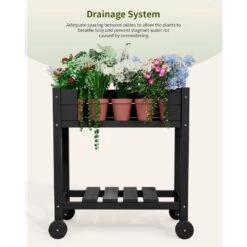 Rectangular Garden Planter Box with Wheel. The raised garden bed is made of HDPE. It is durable and rot-proof. Wheels design can move the planter from 1 place to another place easily. Double Layer Design: cultivate and store to meet dual needs. It is pretty choice for your garden.