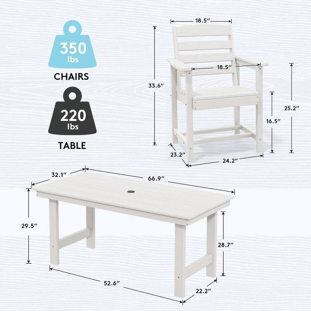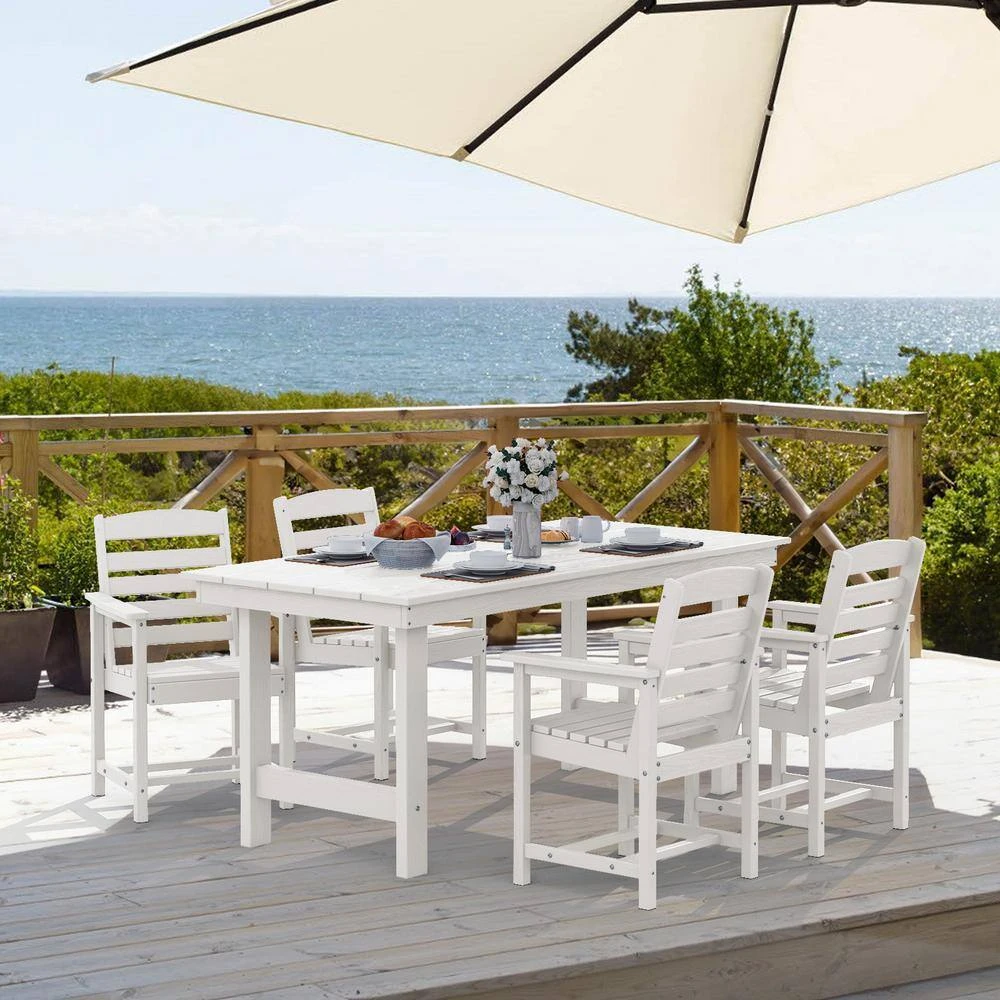 HDPE 7-Piece Plastic Rectangle Table Standard Height Outdoor Dining Set In White
