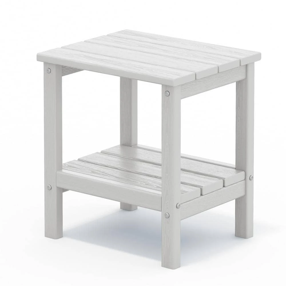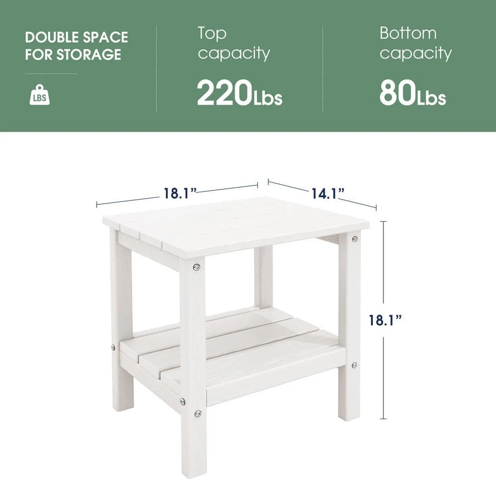 The perfect end table for your patio or living room. Featuring a 2-shelf design and great weight capacity. The weight capacity of the top shelf is 360 lbs. and the weight capacity of the bottom shelf is 160 lbs. How surprising. It is equivalent to a small seat. You can stack some books or magazines on the bottom shelf.