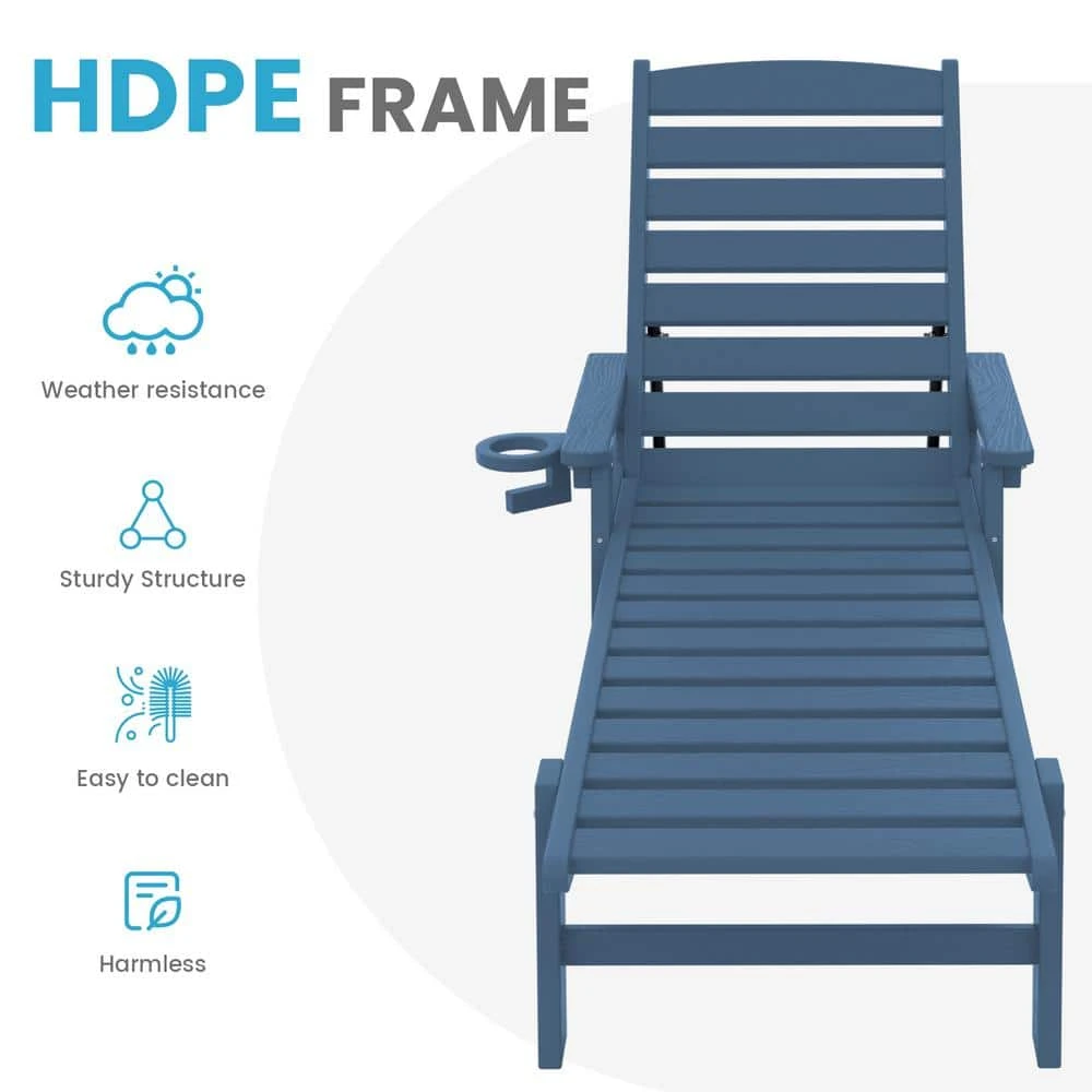5 Position Adjustable Backrest: The backrest of the patio lounge chair with 5 position to adjust, allows you to find the perfect position for relaxation. Whether you’re looking for a cozy spot to read, nap, or sunbathe, it allows you to find the ideal angle for these activities. The HDPE adjustable patio lounge chair with wheels is available in various colors, allowing you to choose a chair that matches your outdoor decor. Its modern design makes it a comfortable and practical addition to any outdoor space.