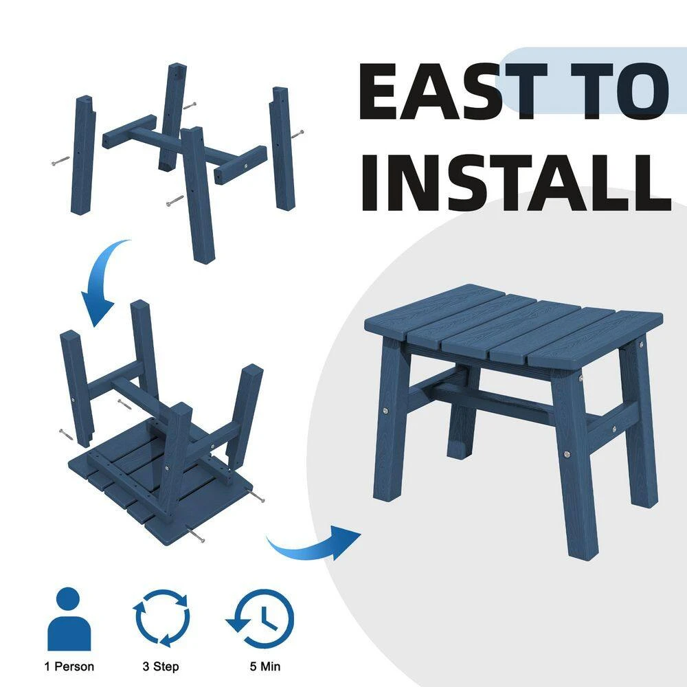HDPE Navy Plastic Outdoor Ottoman (1-Pack)