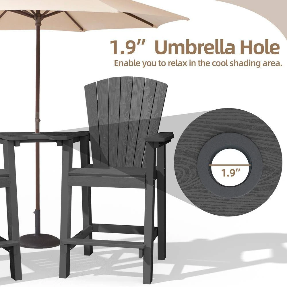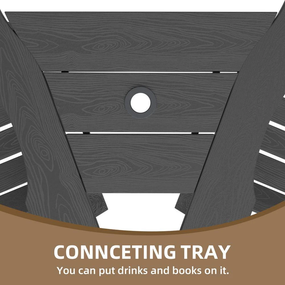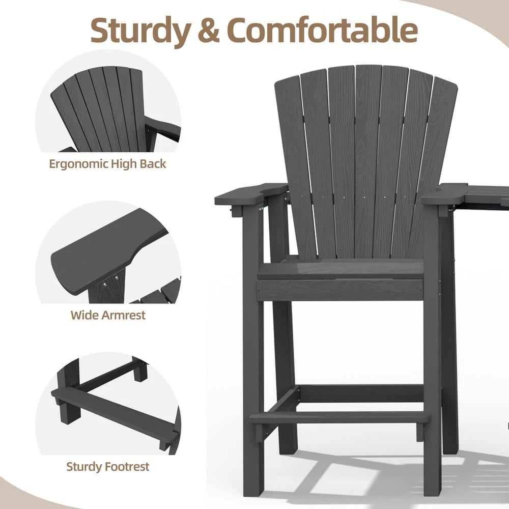 HDPE Plastic Tall Adirondack Chair (Set Of 2) Outdoor Barstools With Connecting Tray In Gray