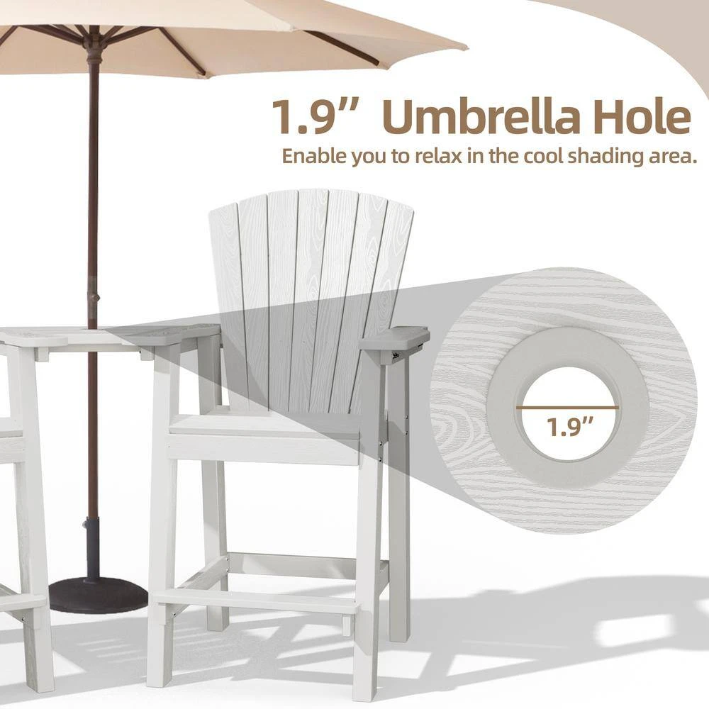 - ?Detachable Tray with a Cut-Out Hole?The removable connecting tray between the arms of the dual Adirondack balcony chairs adds an extra room for a few cups of drinks, snacks,holds up to 33lbs. A 2 inch diameter hole in the center of the tabletop makes it possible to put up your umbrella.